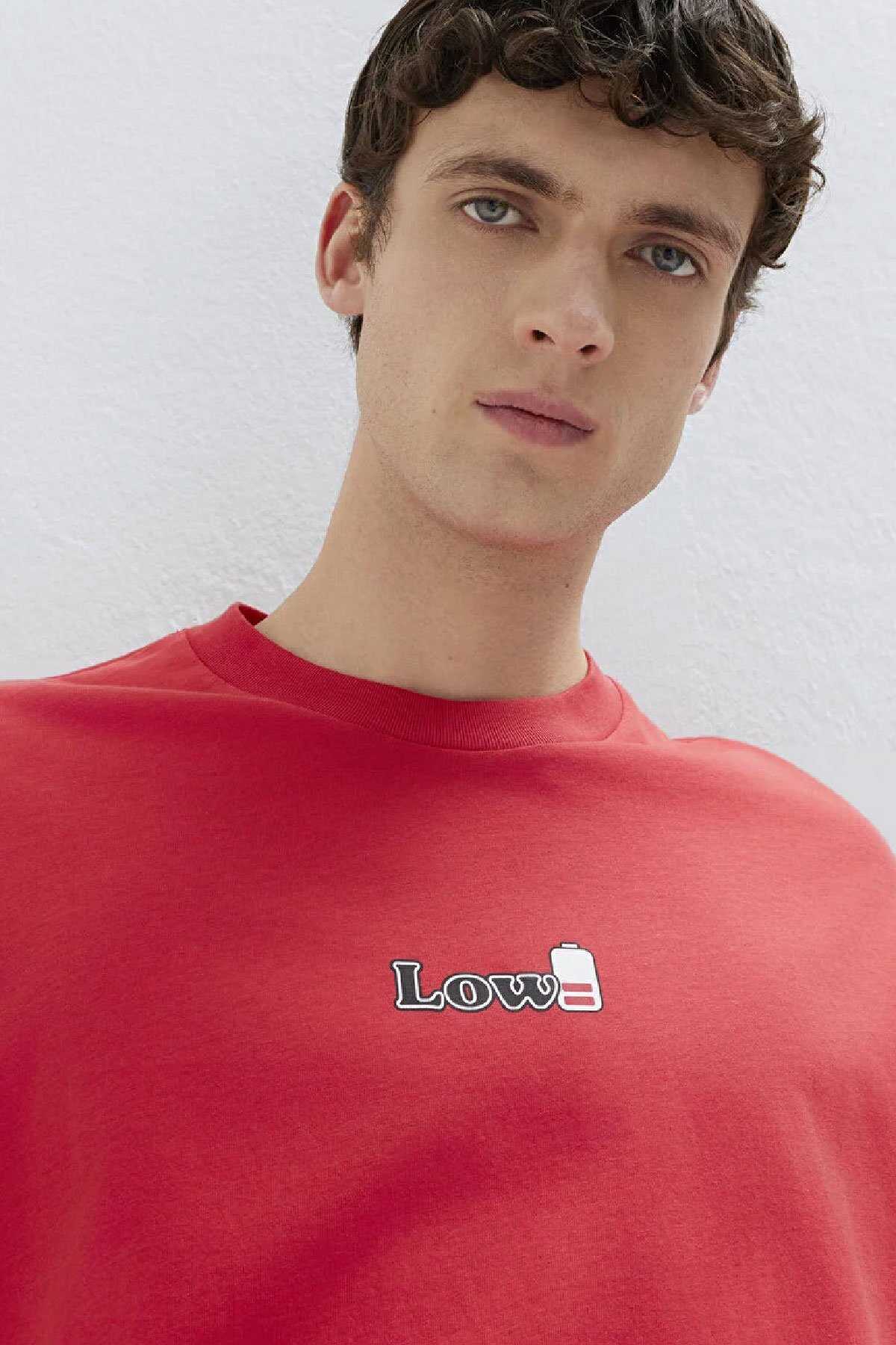 Mavi nin erkek koleksiyonundan Baskılı Kırmızı Tişört.-Oversize Geniş Kesim-%100 Pamuk-Jean: Bel: 31 Boy: 32 Üst: L-Boy: 178 cm Bel: 80 cm Göğüs: 92 cm Kalça: 92 cm-Ürün Kodu: 0613376-70428-Menşei: Türkiye