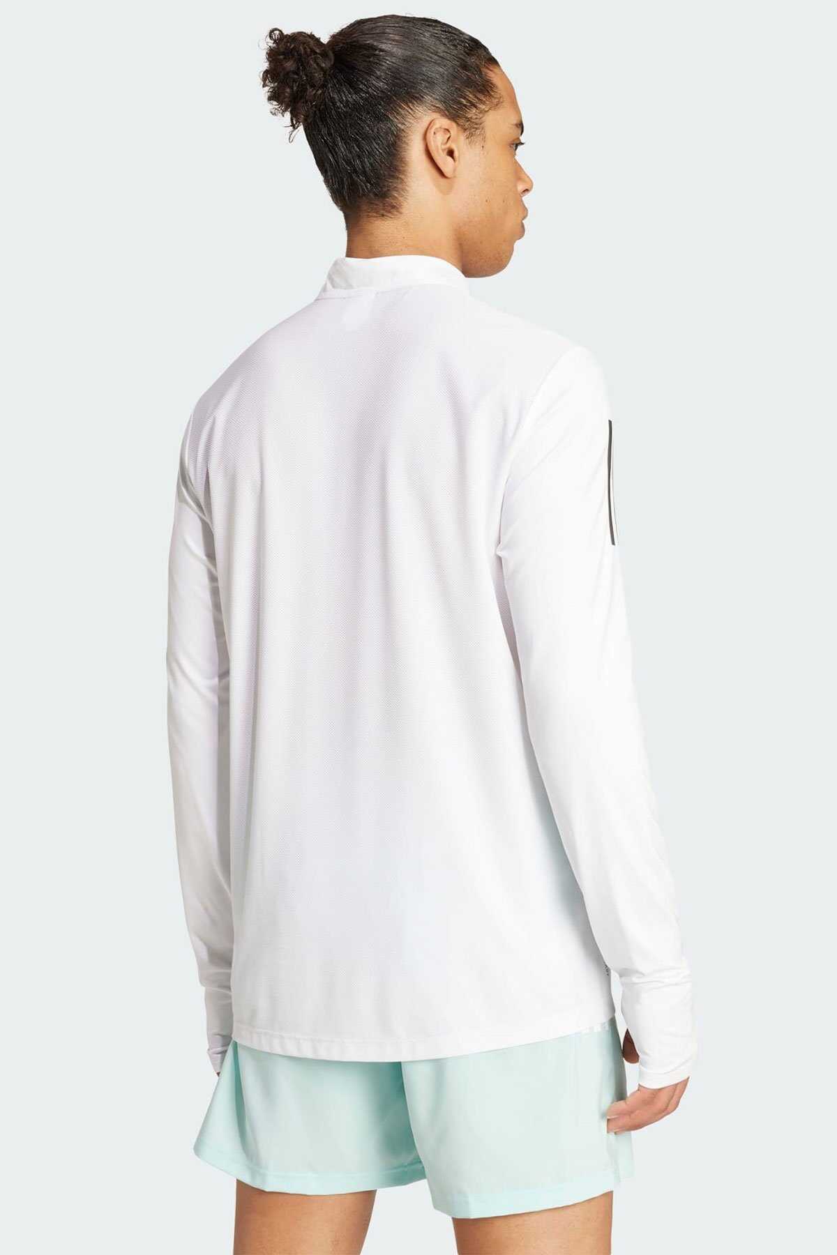 Yola veya piste sizin kadar sıkı çalışan kıyafetlerle çıkın. adidasın bu koşu üstü hafif tek jarse ve nefes alabilen fileyi soğuğa karşı ekstra koruma sağlayan başparmak delikleri gibi özelliklerle birleştiriyor. AEROREADY teknolojisi sizi kuru ve rahat tutmak için nemi uzaklaştırır. Yarım fermuarlı tasarım hareket halindeyken havalandırmayı ayarlamanızı sağlar.-Normal uyum-Dik yakalı yarım fermuar-Gövde: %91 polyester (geri dönüştürülmüş) %9 elastan-Arka: %86 polyester (geri dönüştürülmüş) %14 elastan-Manşetlerde başparmak delikleri-Yansıtıcı logo-Ürün rengi: Beyaz Beyaz-Ürün kodu: IV5423