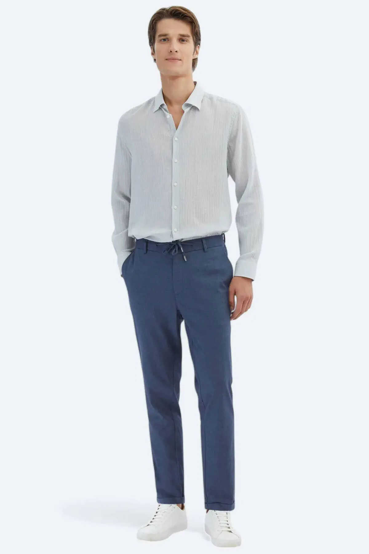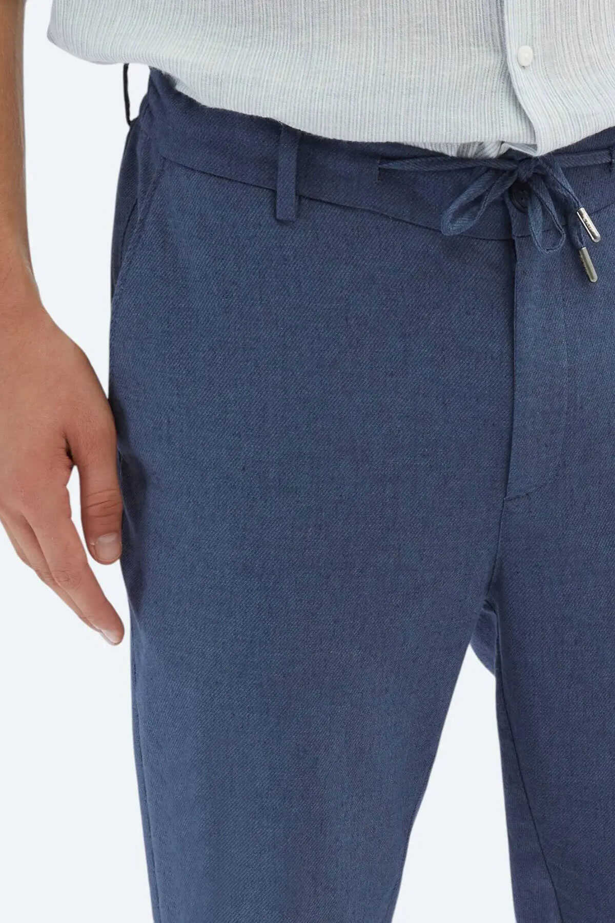 Rahat kesimi ve esnek yapısı ile öne çıkan bu pantolon şehirli erkeğin hem iş hem de hafta sonu kombinlerinde konforlu bir stil sunar.-Pantolon-Desen: Düz-Line: Casual-Fit: Jogging Fit-Cep: Yan Cep-Karışım: %39 Pamuk %28 Polyester %17 Keten %14 Viskon %2 Elastan-Sezon: Yaz-Manken: Boy: 189 cm Göğüs: 94 cm Bel: 77 cm Beden: 32-Article: PANT-3414-Üretim Yeri: Türkiye