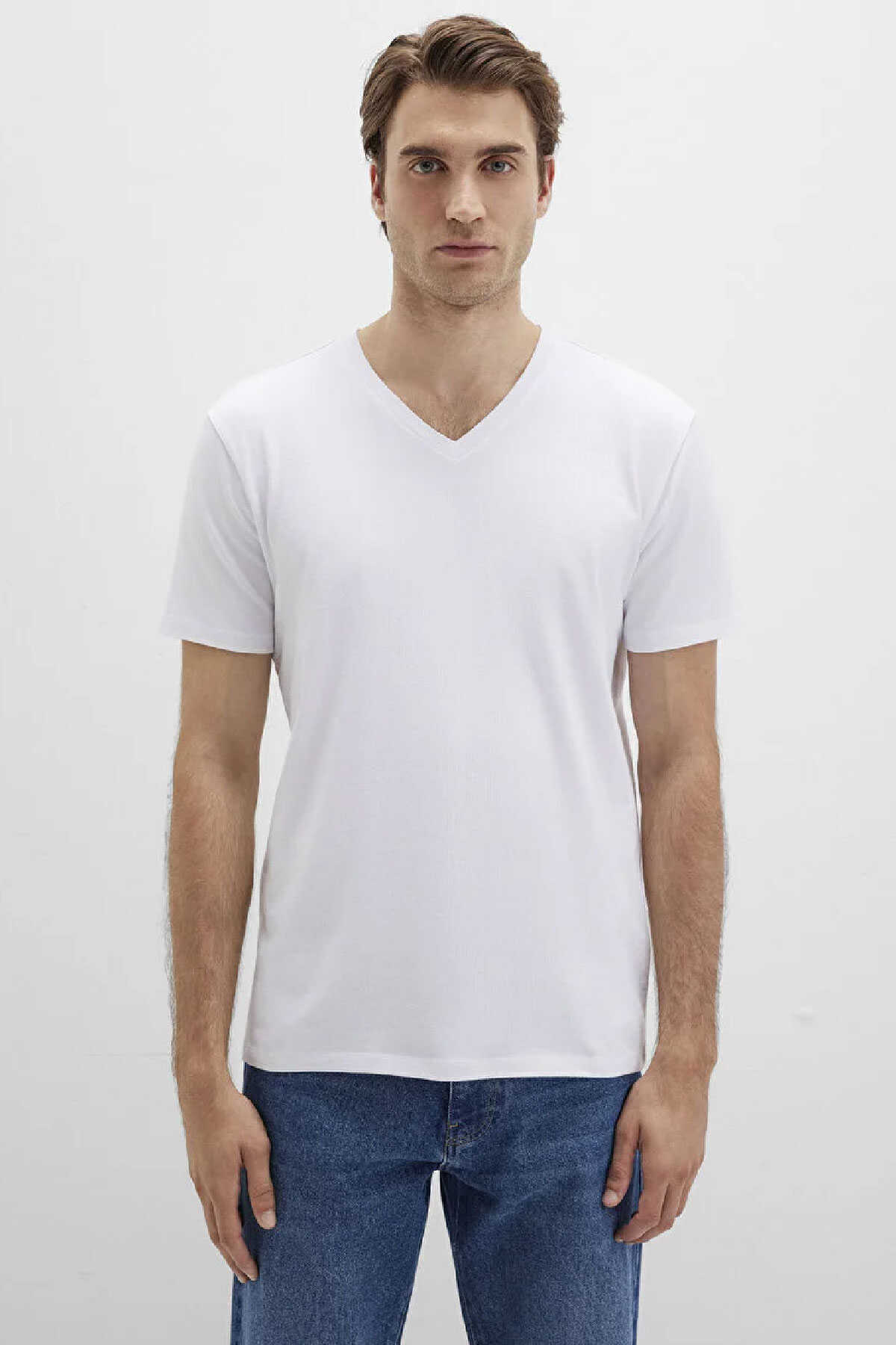 Fitted vücuda oturan stretch tişört.-V yaka kısa kol. -İçerisindeki elastan sayesinde daha esnek daha rahat. -Stretch V Yaka Beyaz Basic Tişört.-Ürün Kodu: 061748-620-Kumaş Bilgileri-%95 Pamuk-%5 Elastan-Manken Ölçüleri-Jean: Bel: 31 Boy: 30 Üst: L-Boy: 188 cm Bel: 83 cm Göğüs: 98 cm Kalça: 91 cm-Menşei: Türkiye