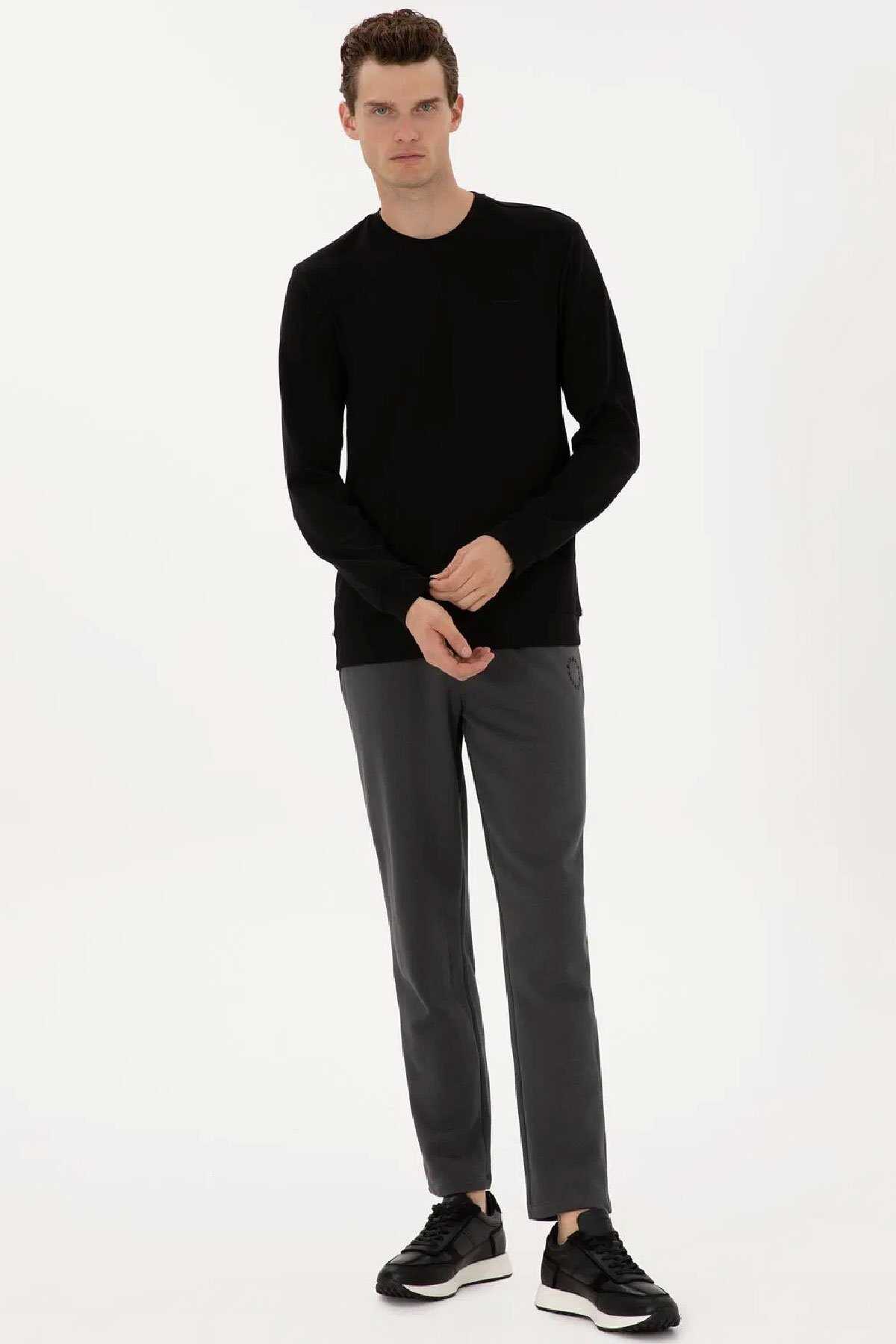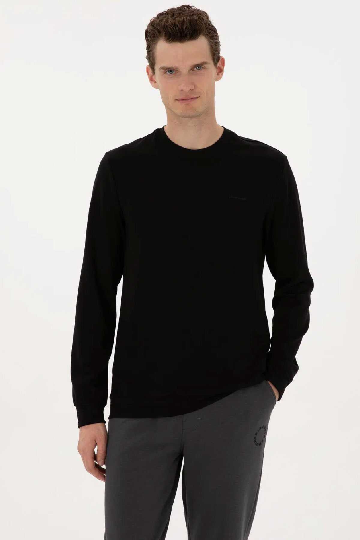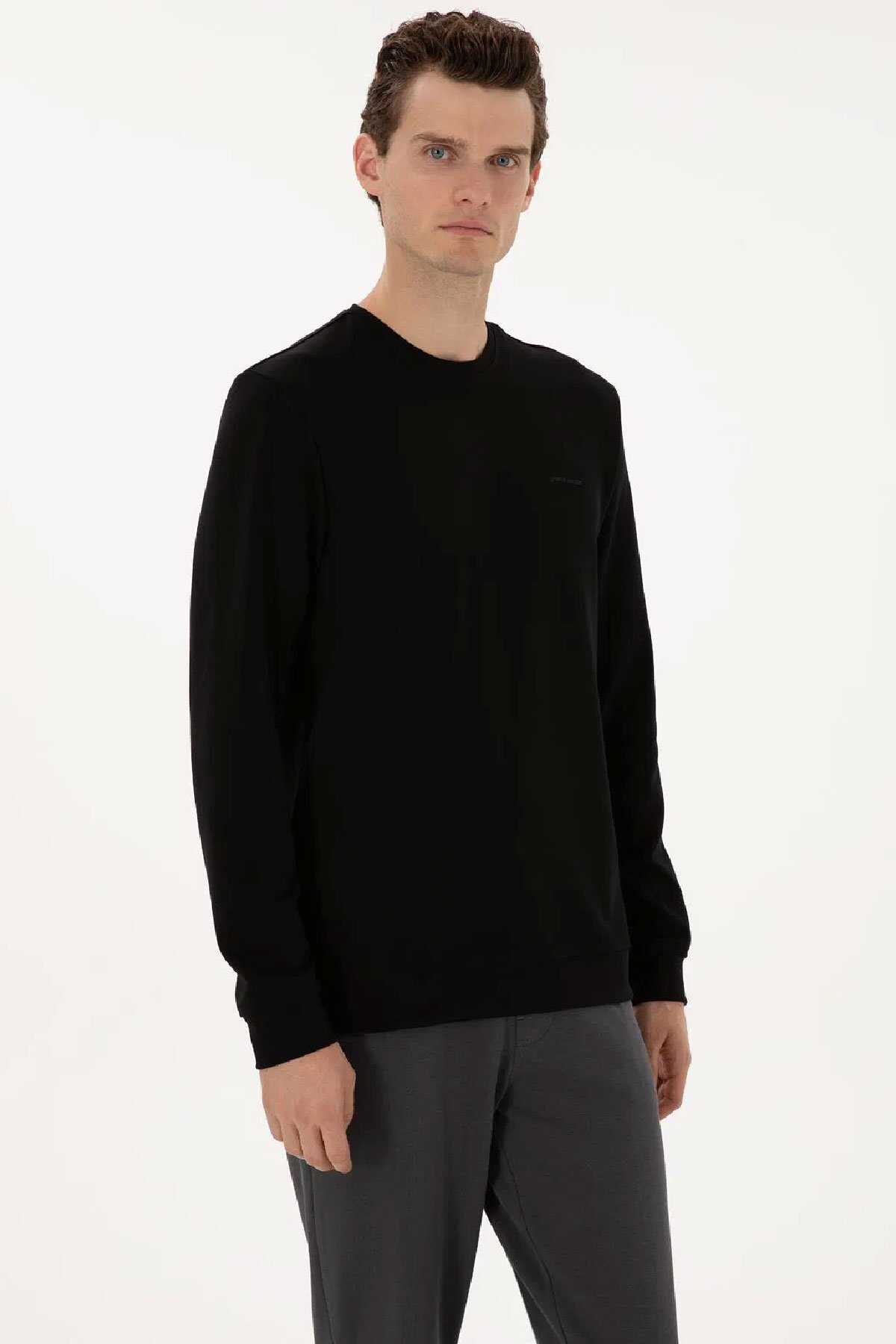 %50 Viskoz %45 Poliester %5 Elastan - Spandeks - Pierre Cardin Yerli Üretim - Renk: Siyah - Fit: Regular - Tip: Sweatshirt - Yaka Tip: Bisiklet Yaka - Cep Tipi: Cepsız - Kol Boyu: Uzun Kol - Cinsiyet: Erkek - Menşei: Türkiye