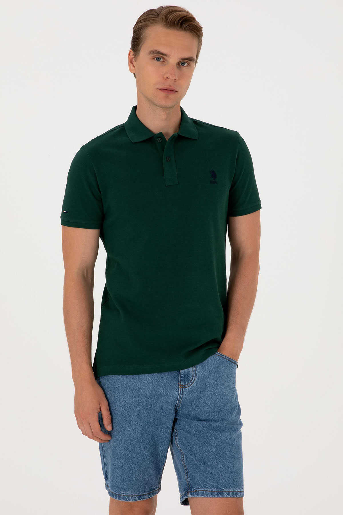 %100 Pamuk -U.S. Polo Assn Yerli Üretim-Fit: Slim-Yaka Tip: Gömlek Yaka-Desen: Düz-Kol Boyu: Kısa Kol-Cinsiyet: Erkek-Model Bilgileri-Boy: 186-Kilo: 76-Göğüs: 97-Bel: 75-Basen: 98-Beden: 50M31-Ürün Beden: M-Menşei: Türkiye