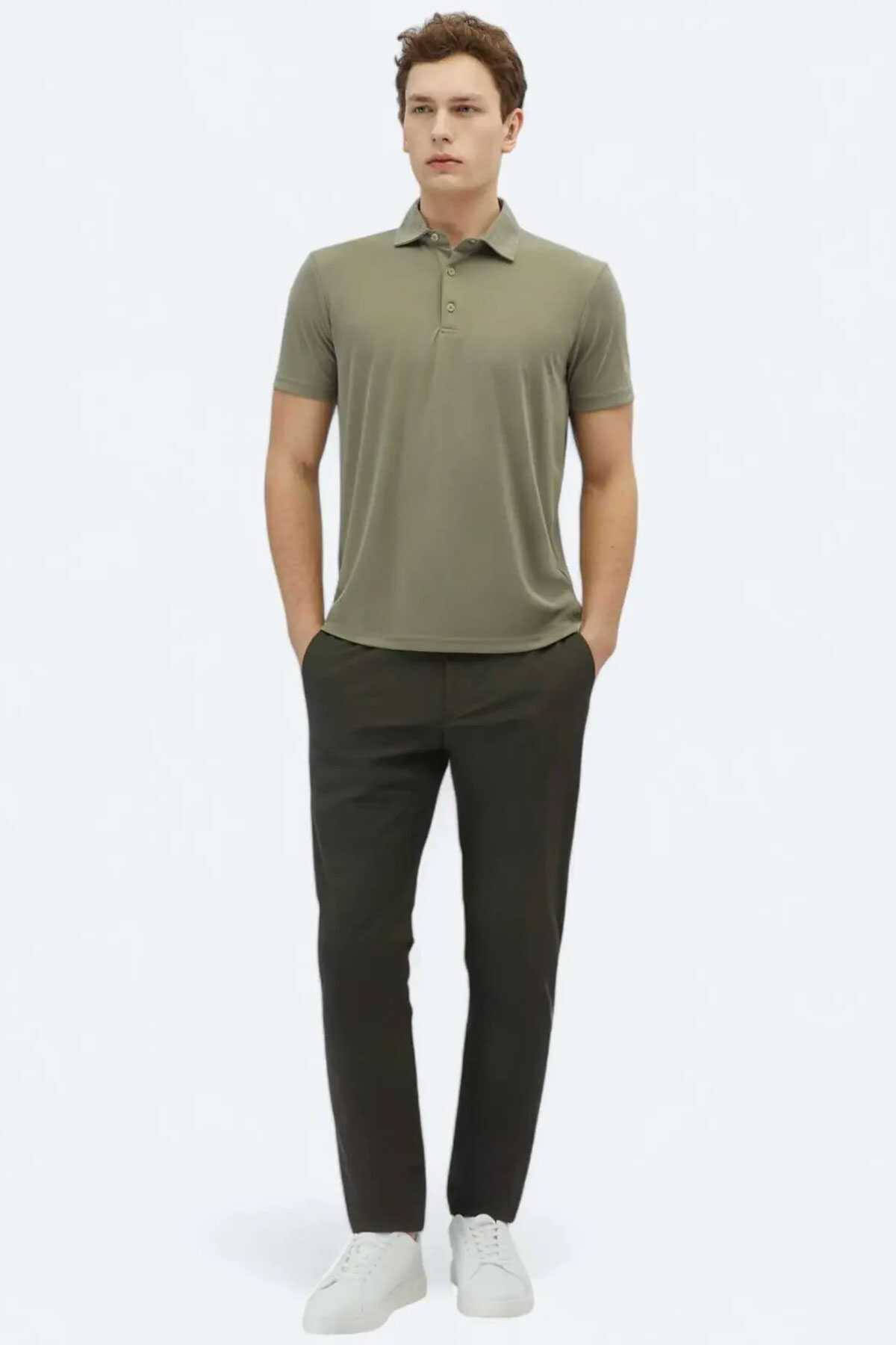 Yaz sezonu için ideal bu düz polo yaka haki tişört kumaş karışımıyla yumuşak dokulu hafif ve nefes alabilir bir yapı sunar.-Regular fit kesimiyle rahatlık sağlarken sade tasarımıyla günlük stilinize zamansız bir şıklık katar. Casual giyimin güçlü tamamlayıcılarından biri olarak öne çıkar.-T-shirt-Desen: Düz-Line: Casual-Yaka: Polo Yaka-Fit: Regular Fit-Karışım: %59.5 Lyocell %40.5 Polyester-Sezon: Yaz-Manken: Boy: 188 cm Göğüs: 98 cm Bel: 80 cm Beden: M-Article: TSH-1791-Üretim Yeri: Türkiye
