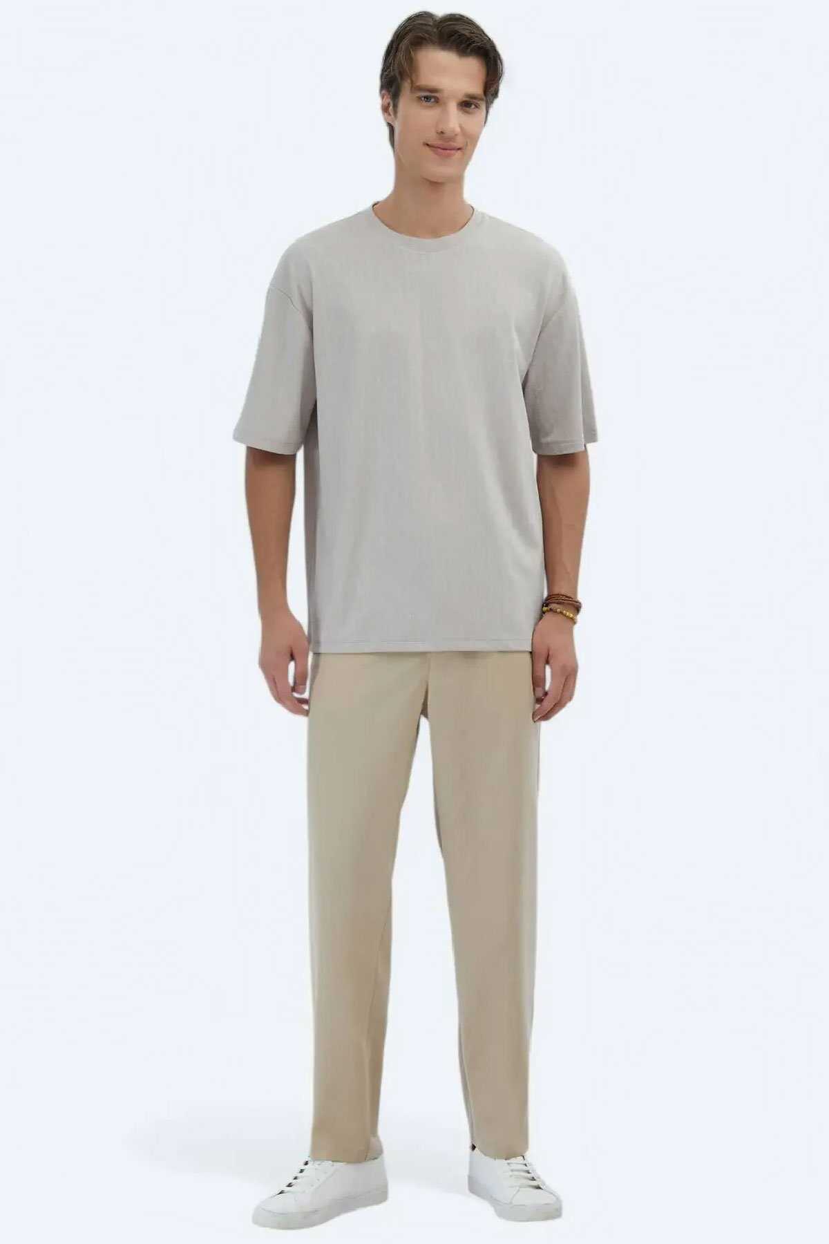 Bej rengi ve oversize kalıbıyla zamansız bir duruş sergileyen bu tişört yaz mevsiminin vazgeçilmez konforunu ve sade şıklığını bir arada sunar.-Düz renk şortlar jogger pantolonlarla yada jeanlerle rahatça kombinleyerek günün her anına uygun dinamik bir stil yakalayabilirsiniz.-T-shirt-Desen: Desenli-Line: Casual-Yaka: Bisiklet Yaka-Fit: Oversize Fit-Karışım: %95 Polyester %5 Elastan-Sezon: Yaz-Manken: Boy: 189 cm Göğüs: 94 cm Bel: 77 cm Beden: M-Üretim Yeri: Türkiye-Article: TSH-1801-Çekim ortamı ışık ve gölgelenmelere bağlı olarak görsellerde renk farklılıkları ya da parlamalar oluşabilir.