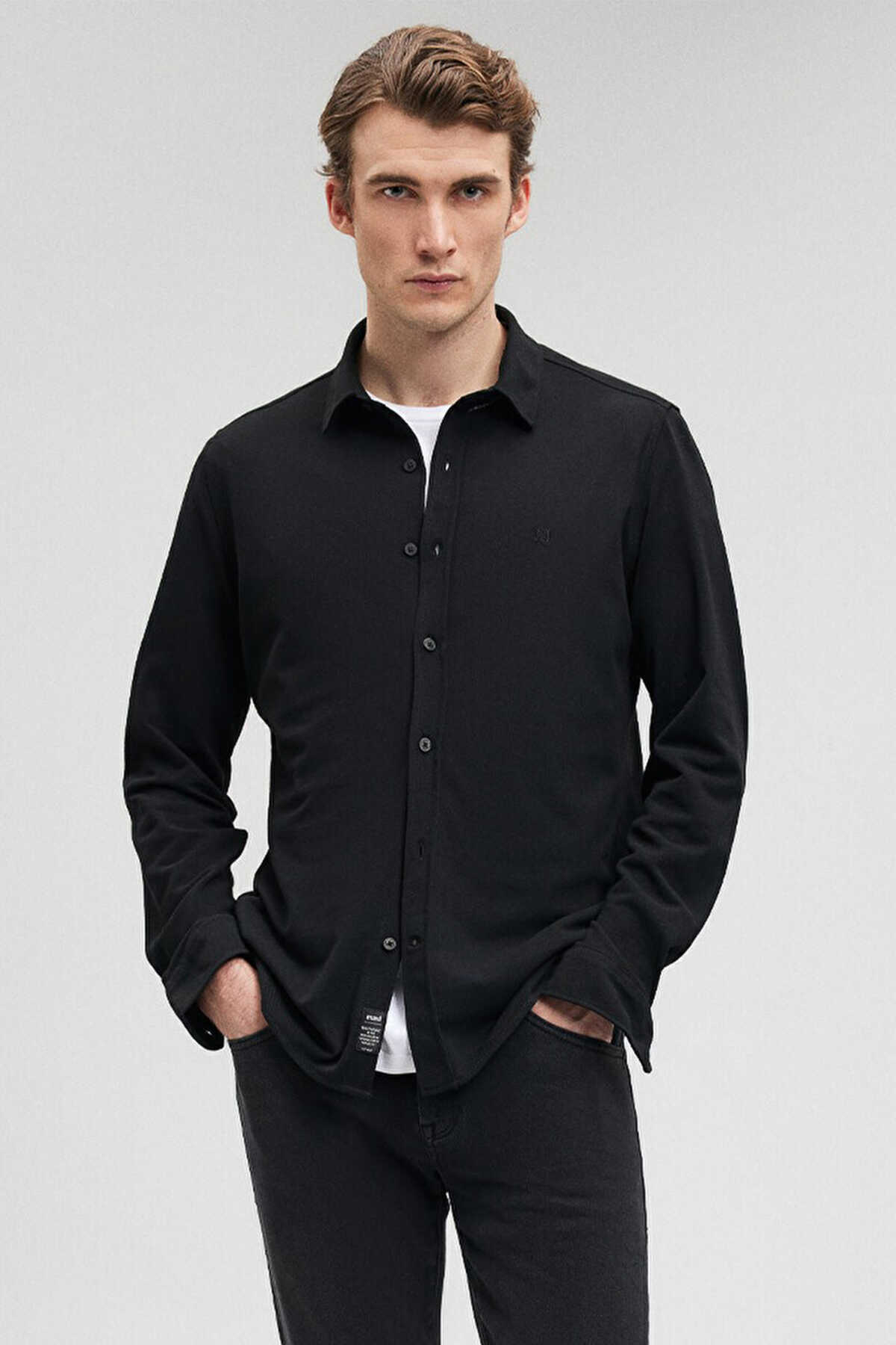 Mavi nin erkek koleksiyonundan Siyah Örme Gömlek. Ürün Özellikleri düğmesiz gömlek yaka-Ürün Kodu: 0210294-900-Kumaş Bilgileri-%53 Polyester-%47 Pamuk-Manken Ölçüleri-Jean: Bel: 31 Boy: 32 Üst: L-Boy: 188 cm Bel: 76 cm Göğüs: 99 cm Kalça: 96 cm