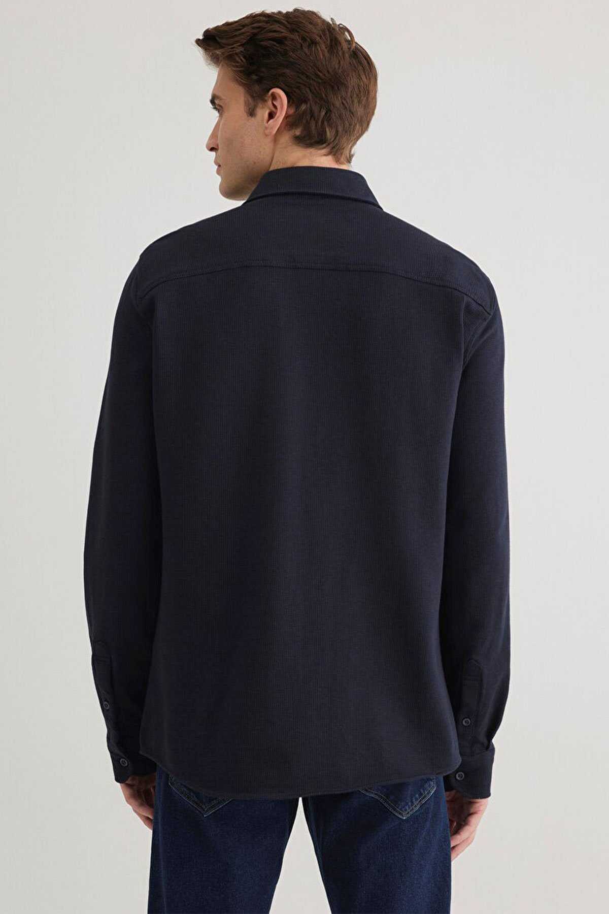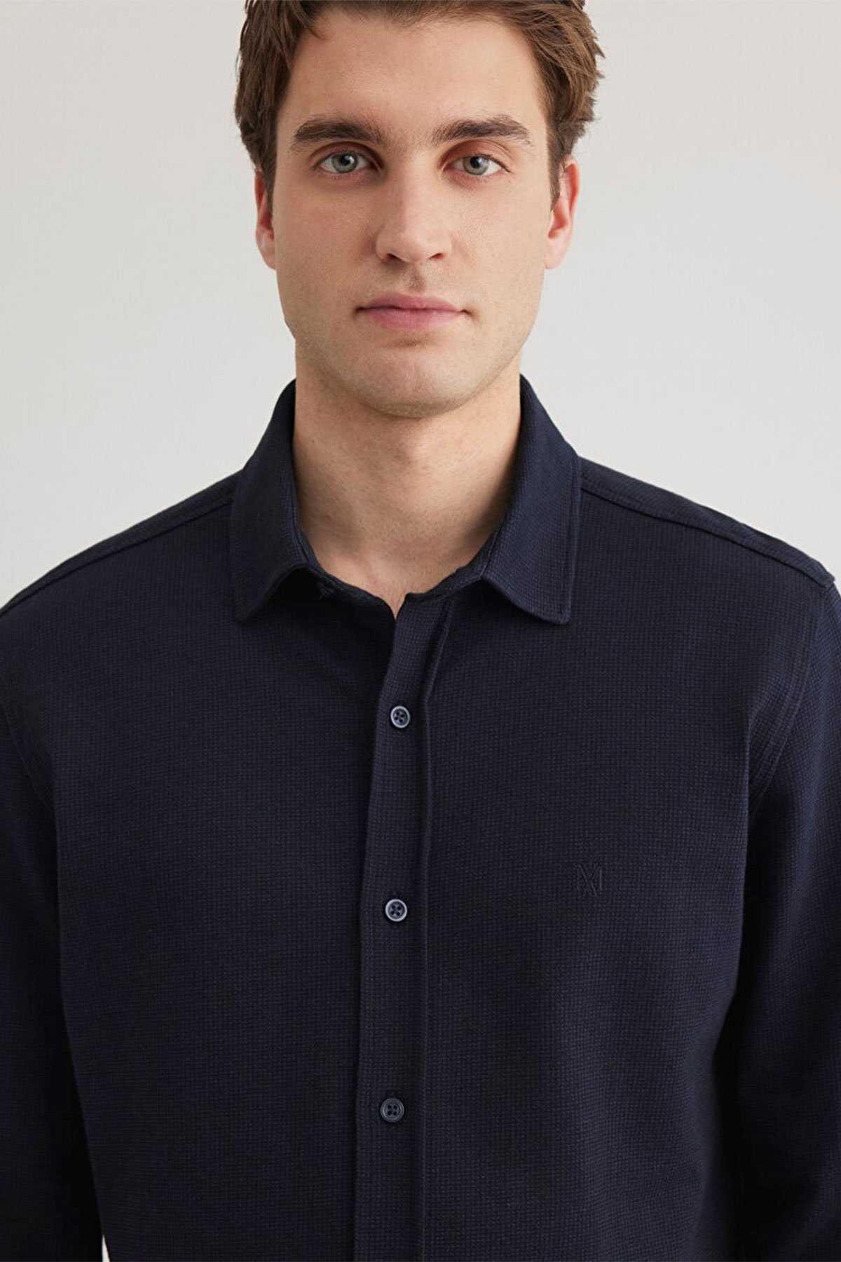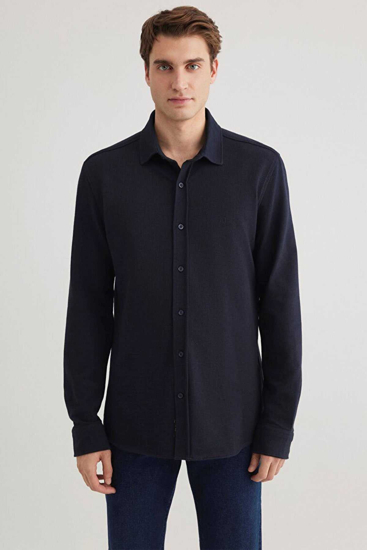 Mavi nin erkek koleksiyonundan Lacivert Örme Gömlek-Slim Fit Dar Kesim-Ürün Kodu: 0211249-70490-Kumaş Bilgileri-%95 Pamuk-%5 Elastan-Manken Ölçüleri-Jean: Bel: 31 Boy: 32 Üst: L-Boy: 189 cm Bel: 78 cm Göğüs: 94 cm Kalça: 88 cm