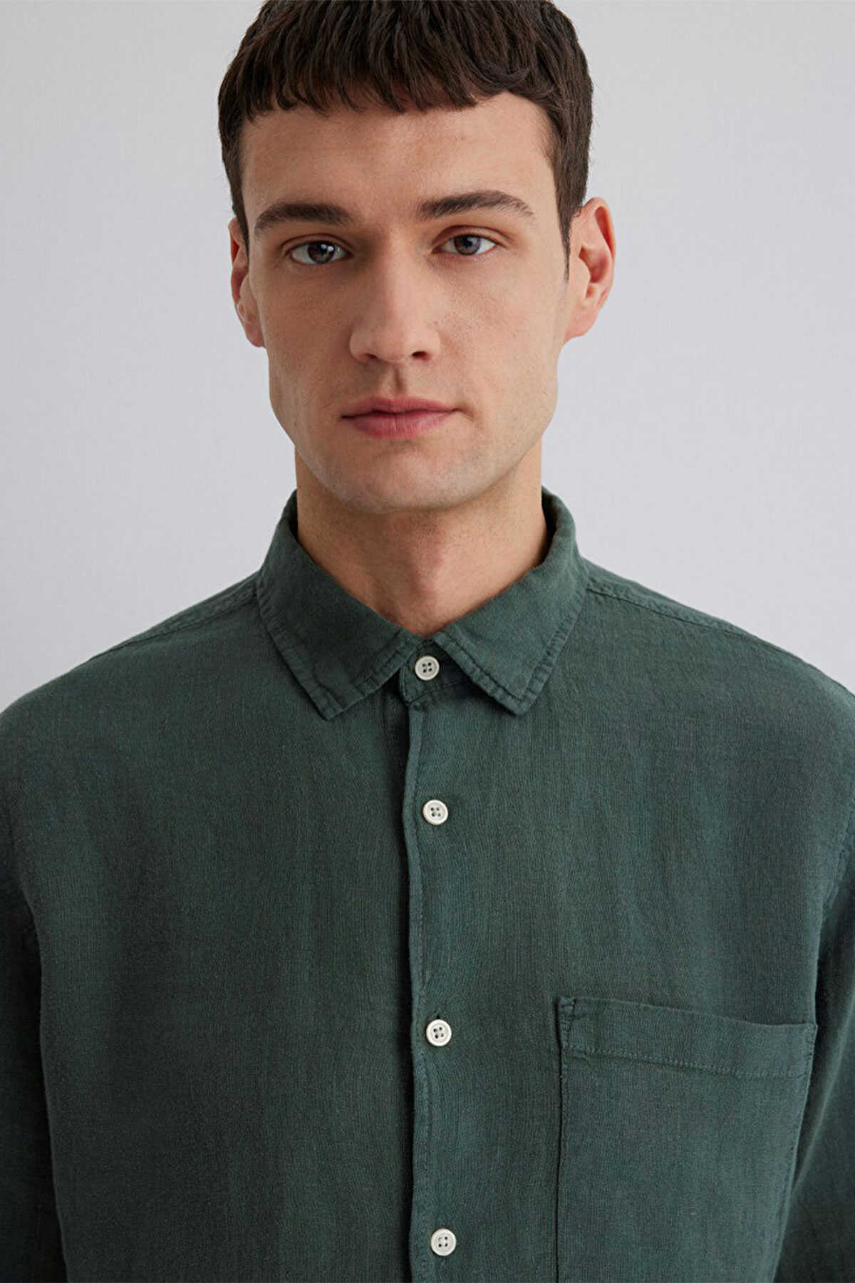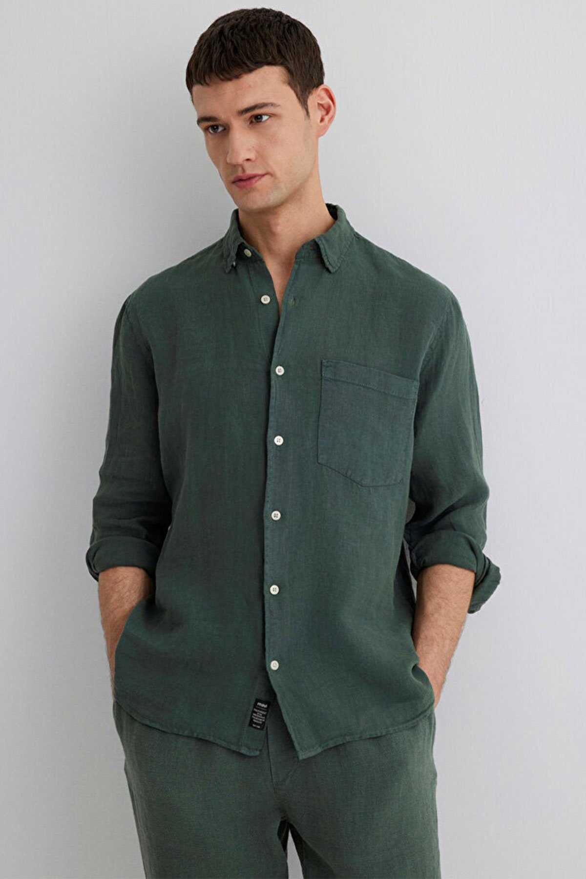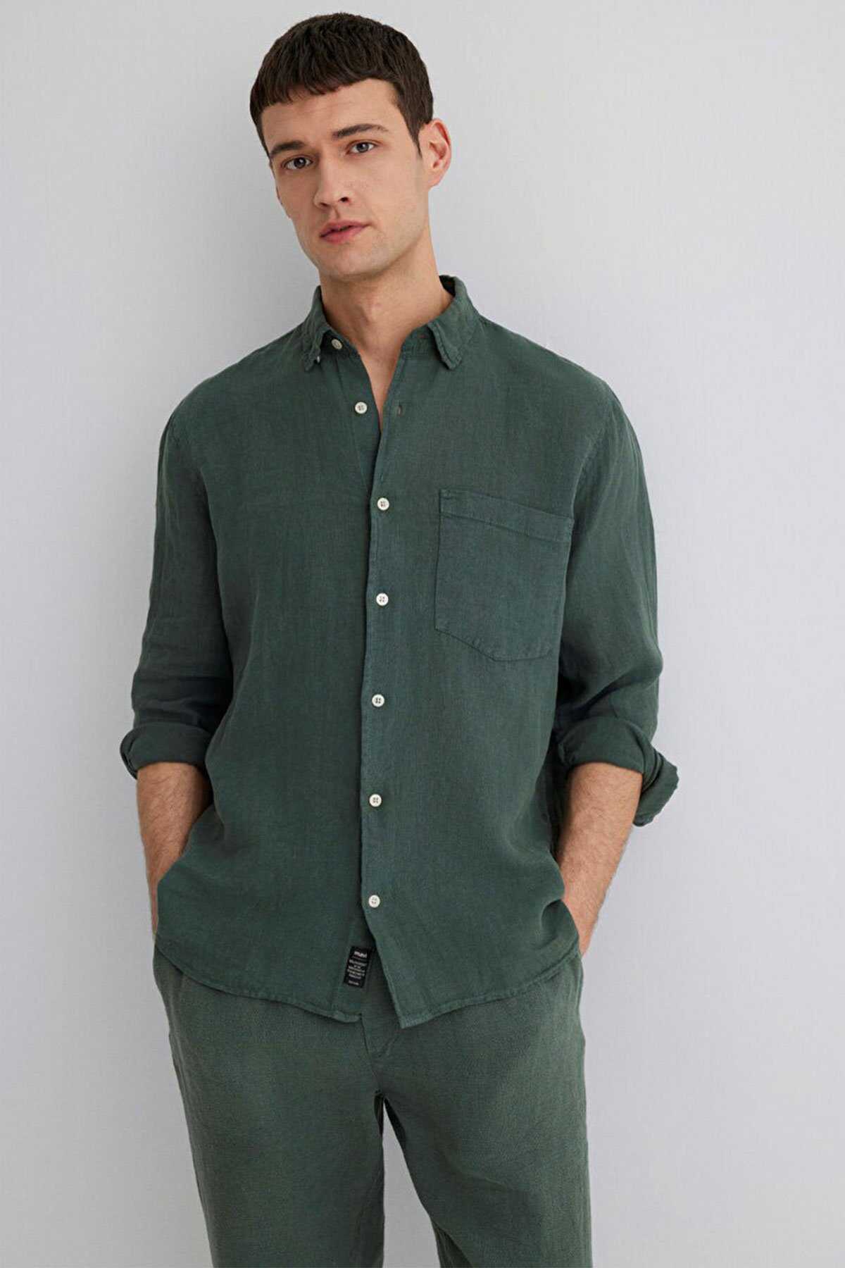 Mavi nin Linen touch koleksiyonundan Yeşil Keten Gömlek. -Doğal bir elyaf olan keten kumaşlar diğer kumaş türlerine göre çok daha dayanıklıdır. -Nemi hapseden yapısıyla ve iri gözenekli dokumasıyla vücuda hava aldırır. -Yansıtıcı özelliği sayesinde de güneşte renk solması gibi şikayetleri minimuma indiren ketenlerle yaz mevsiminde hem serin hem de cool kalın.-Ürün Kodu: 0211472-71598-Kumaş Bilgileri-%100 Keten-Manken Ölçüleri-Alt: Bel: L Üst: L-Boy: 189.5 cm Bel: 80 cm Göğüs: 98 cm Kalça: 98 cm-Menşei: Türkiye
