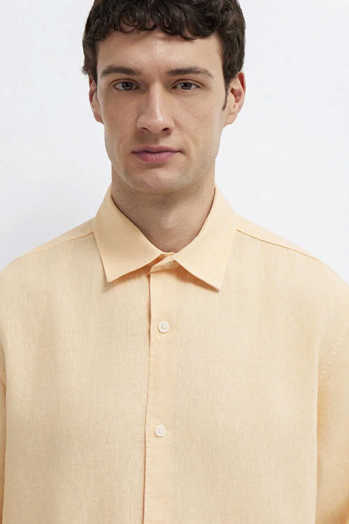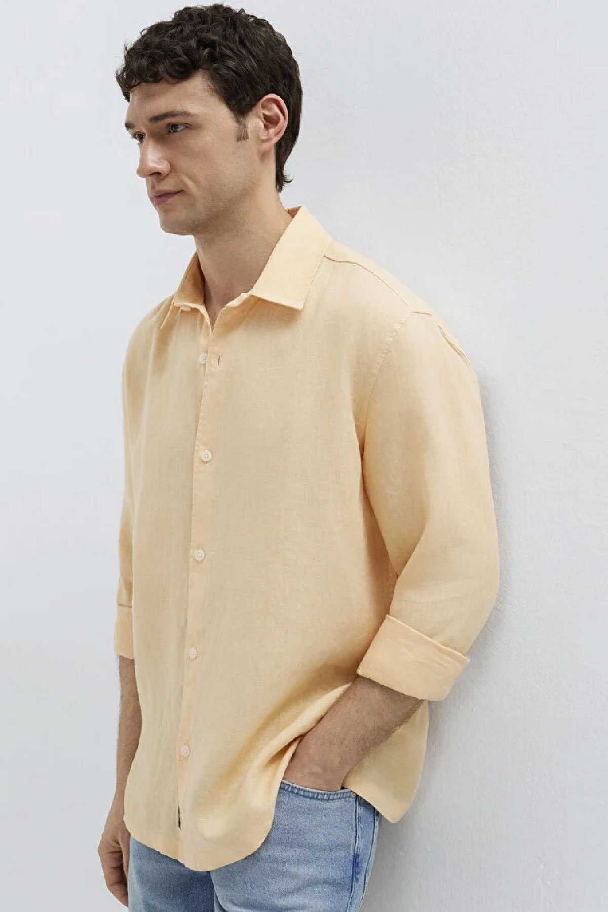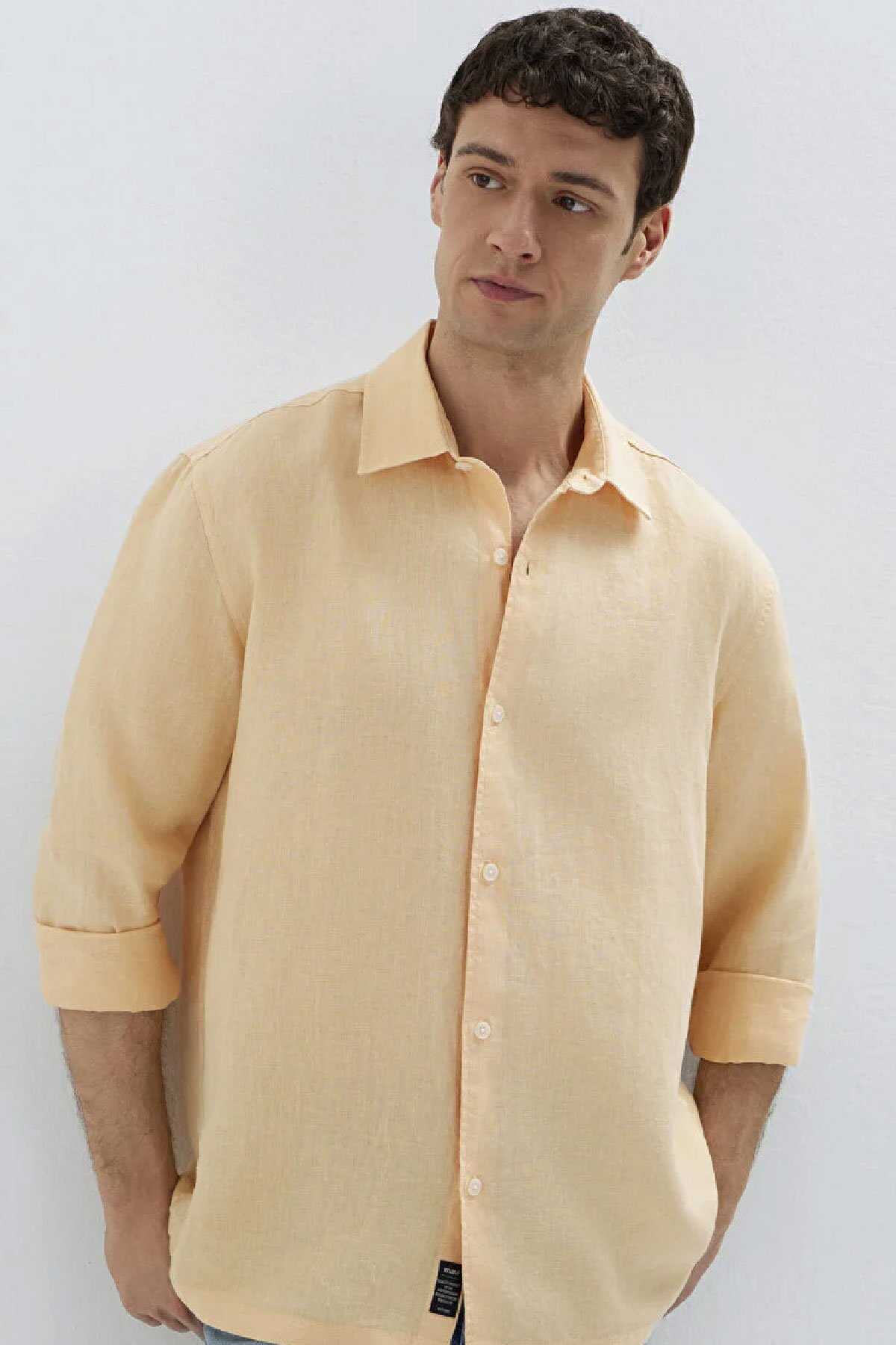 Mavi nin erkek koleksiyonundan Turuncu Keten Gömlek.Doğal bir elyaf olan keten kumaşlar diğer kumaş türlerine göre çok daha dayanıklıdır. Nemi hapseden yapısıyla ve iri gözenekli dokumasıyla vücuda hava aldırır.-Yansıtıcı özelliği sayesinde de güneşte renk solması gibi şikayetleri minimuma indiren ketenlerle yaz mevsiminde hem serin hem de cool kalın.-Regular Fit Normal Kesim-%100 Keten-Manken Ölçüleri-Jean: Bel: 31 Boy: 31 Üst: L-Boy: 189.5 cm Bel: 79 cm Göğüs: 97 cm Kalça: 97 cm-Ürün Kodu: 0211957-71157