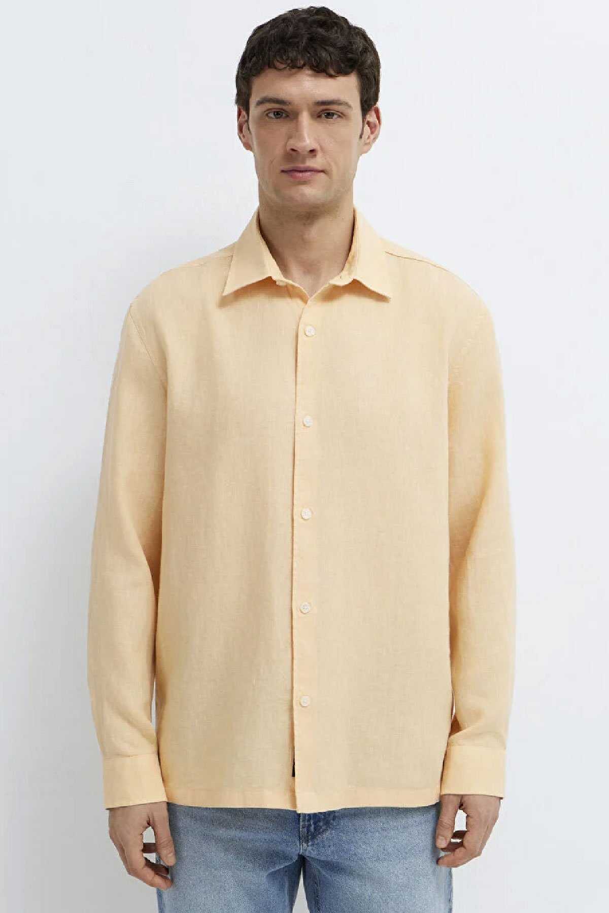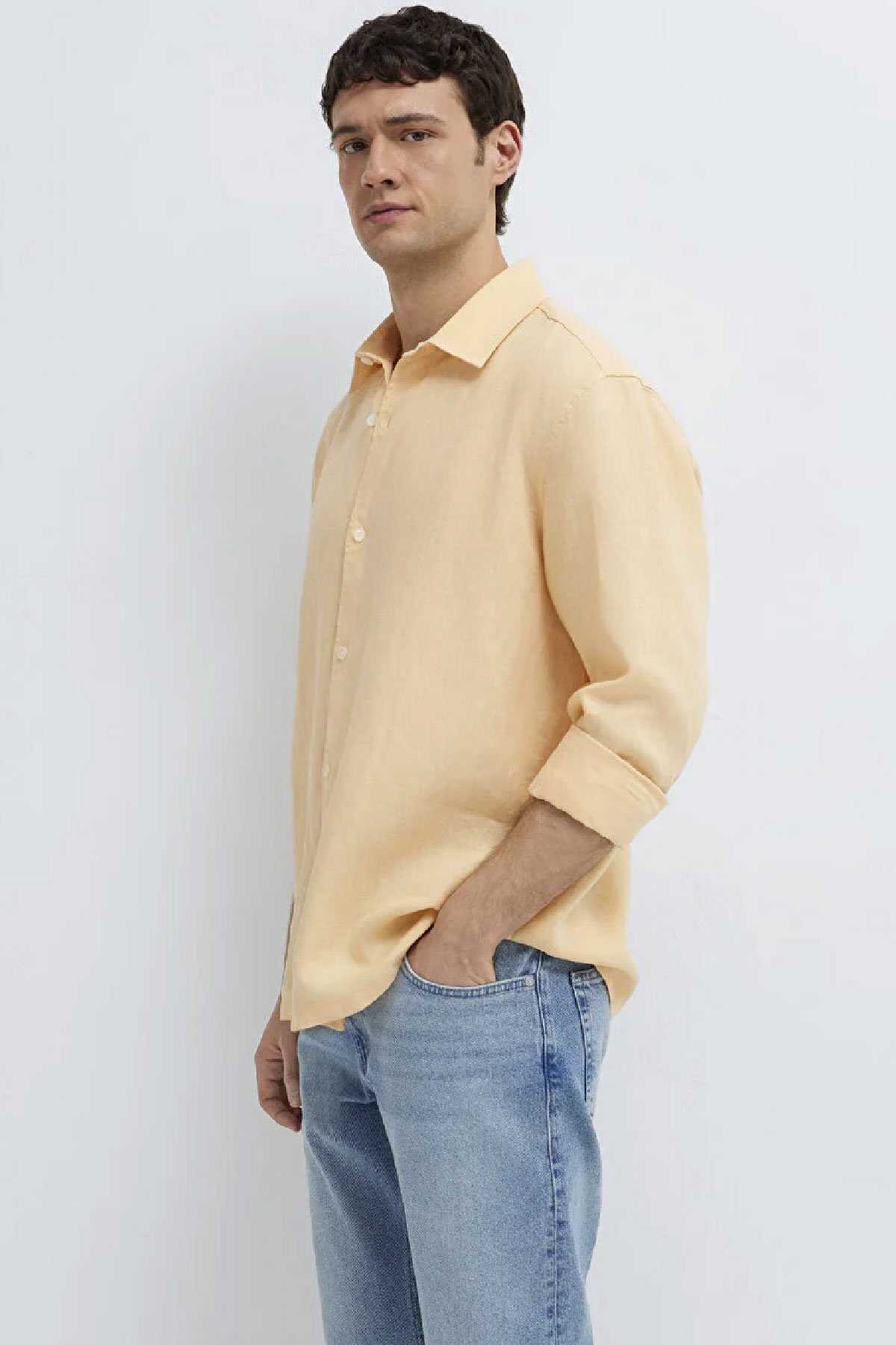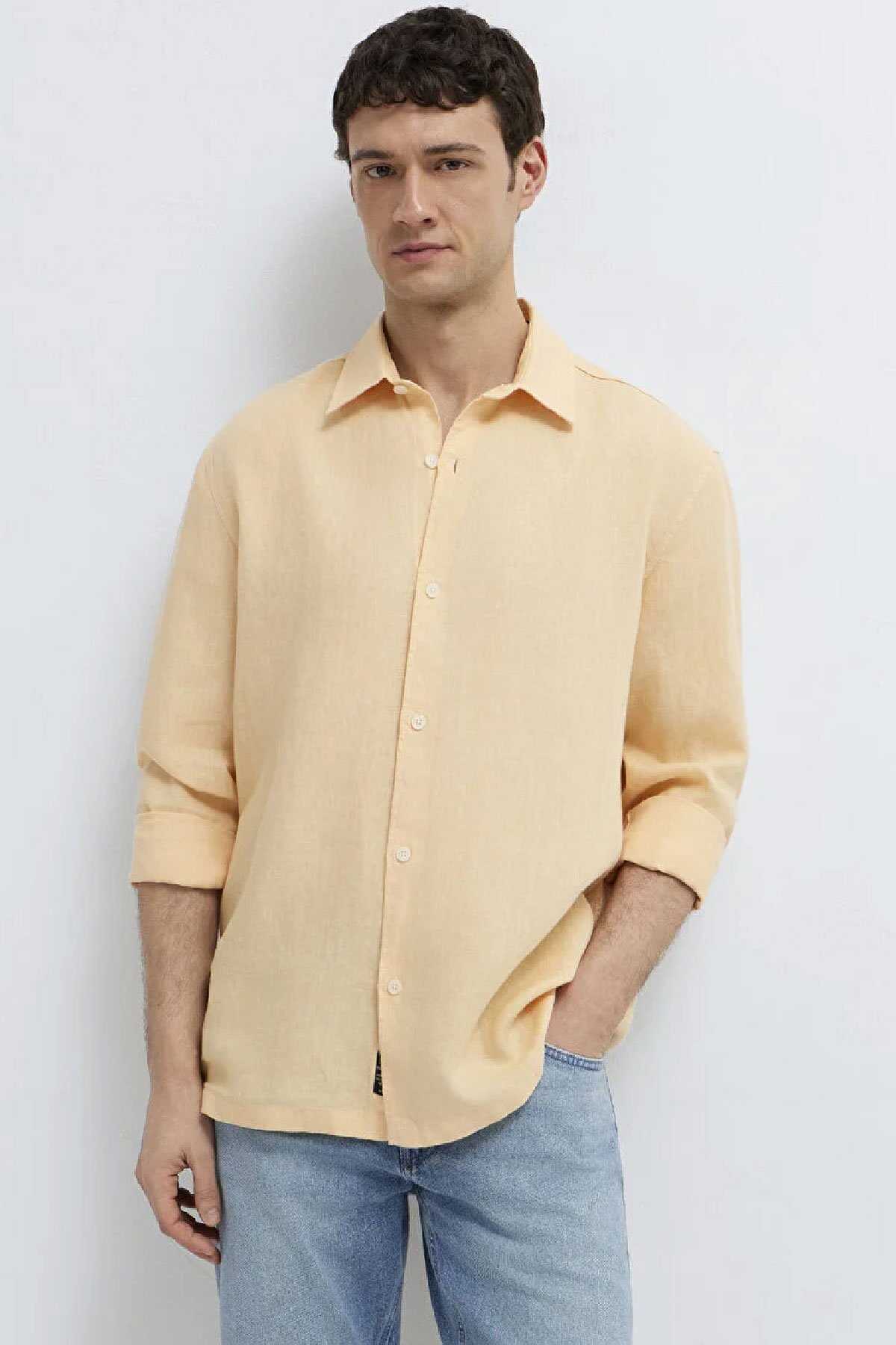 Mavi nin erkek koleksiyonundan Turuncu Keten Gömlek.Doğal bir elyaf olan keten kumaşlar diğer kumaş türlerine göre çok daha dayanıklıdır. Nemi hapseden yapısıyla ve iri gözenekli dokumasıyla vücuda hava aldırır.-Yansıtıcı özelliği sayesinde de güneşte renk solması gibi şikayetleri minimuma indiren ketenlerle yaz mevsiminde hem serin hem de cool kalın.-Regular Fit Normal Kesim-%100 Keten-Manken Ölçüleri-Jean: Bel: 31 Boy: 31 Üst: L-Boy: 189.5 cm Bel: 79 cm Göğüs: 97 cm Kalça: 97 cm-Ürün Kodu: 0211957-71157