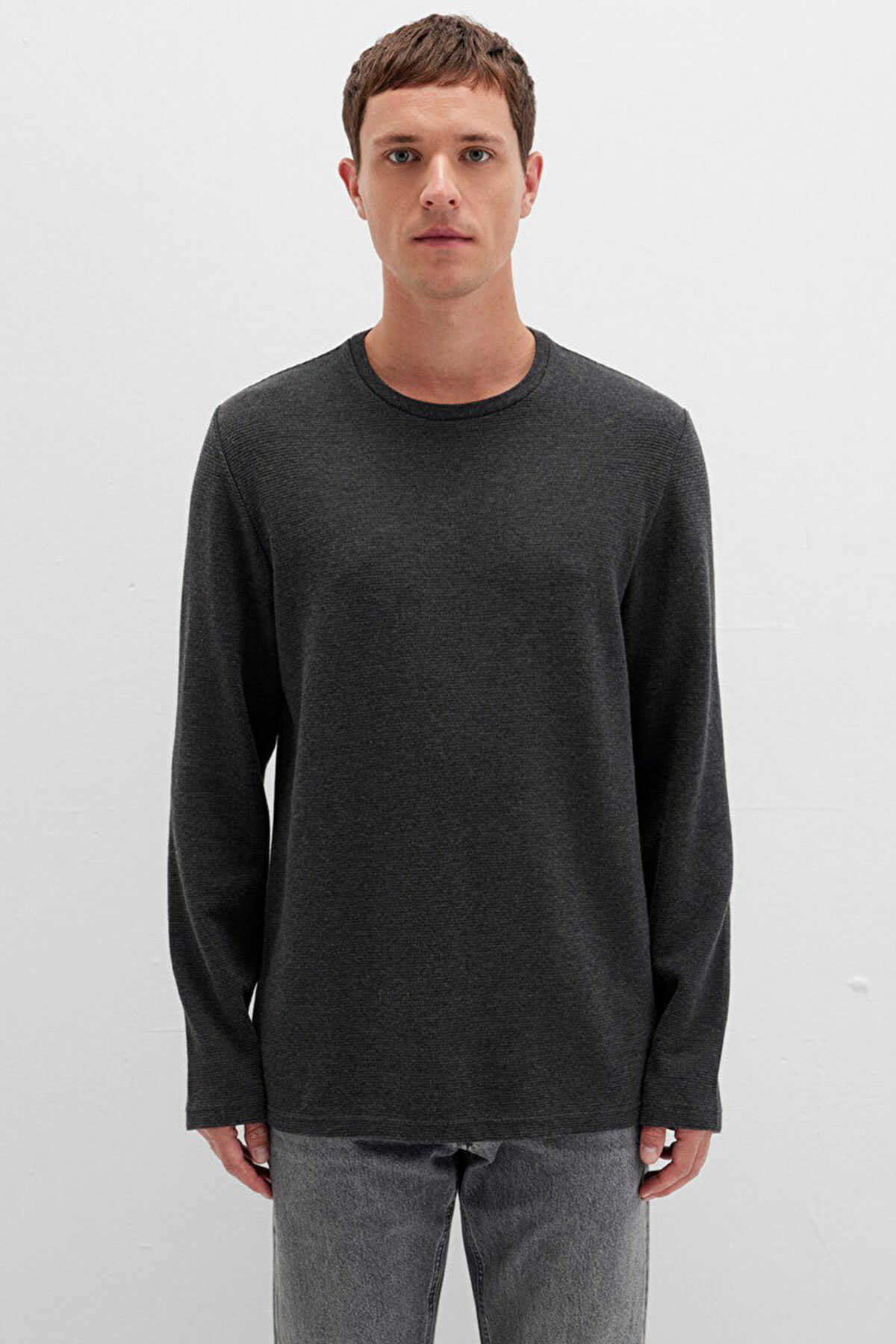 Yüzde yüz pamuk slim fit tişört. -Ottoman kumaş. -Bisiklet yaka. -Uzun Kollu Antrasit Tişört.-Ürün Kodu: 064622-26834-Kumaş Bilgileri-%52 Polyester-%48 Pamuk-Manken Ölçüleri-Jean: Bel: 31 Boy: 32 Üst: L-Boy: 189 cm Bel: 77 cm Göğüs: 94 cm Kalça: 88 cm