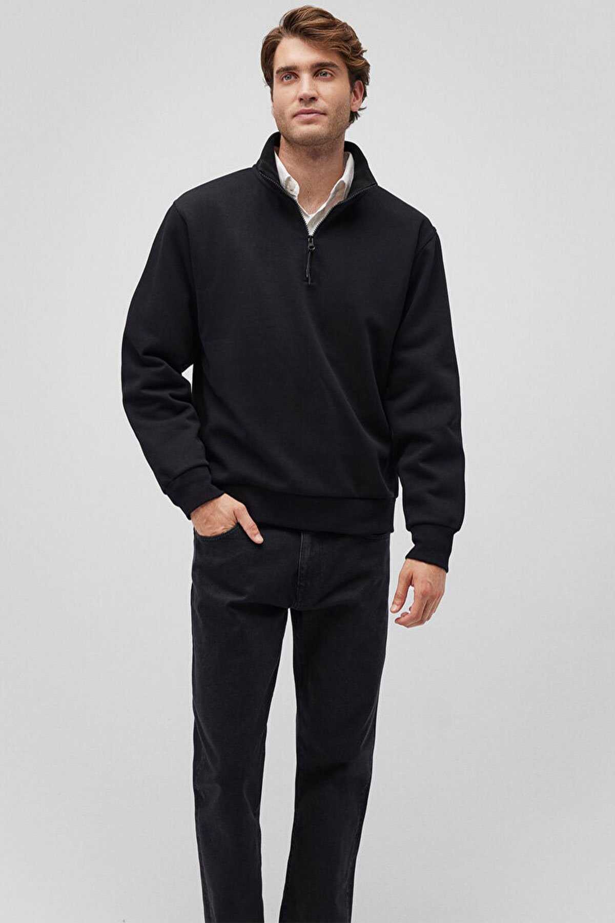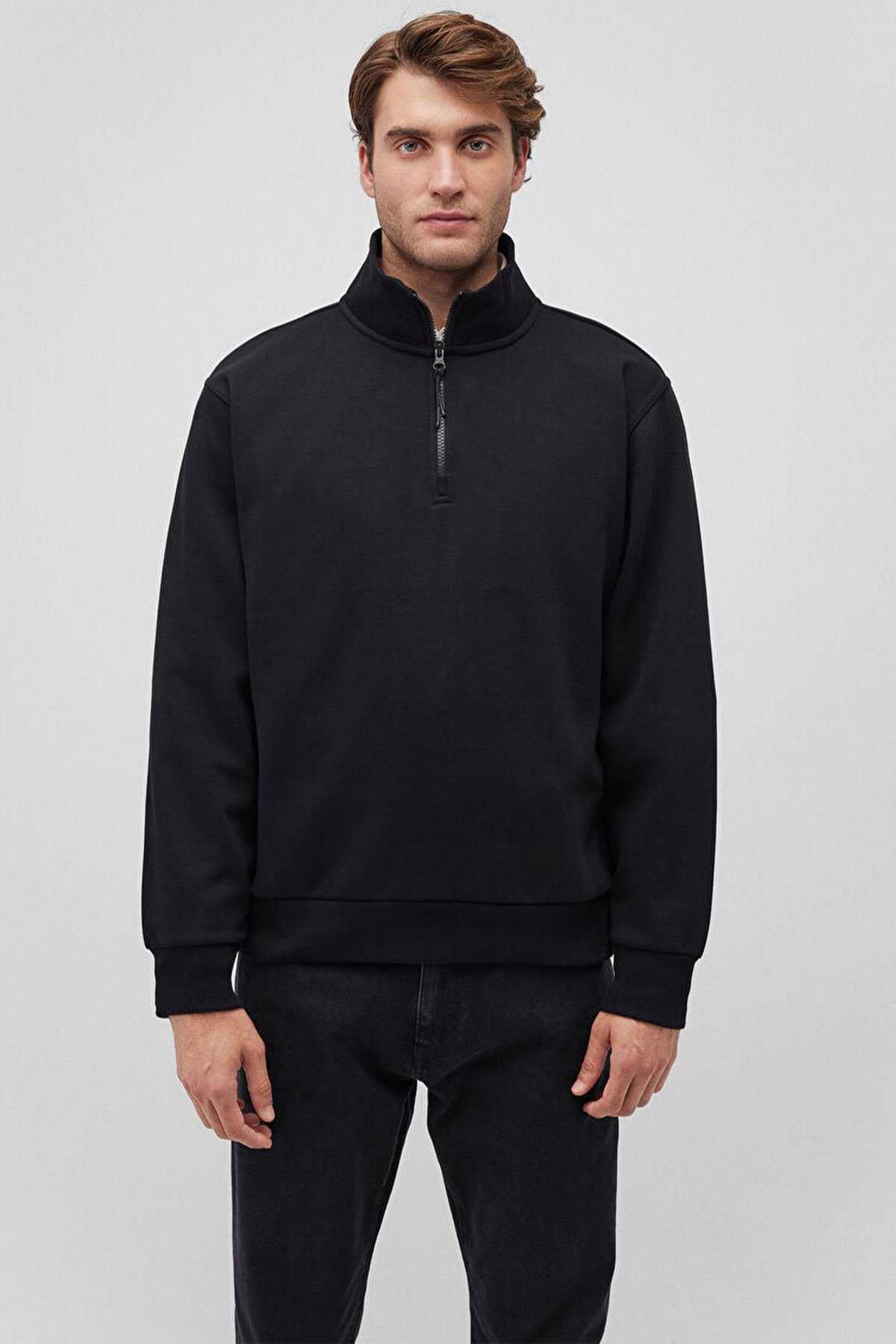 Mavi nin erkek koleksiyonundan Yarı Fermuarlı Siyah Basic Sweatshirt-Şardonlu-Yarı fermuarlı dik yaka-Ürün Kodu: 0S10278-900-Manken Ölçüleri-Jean: Bel: 31 Boy: 31 Üst: S-Boy: 189 cm Bel: 78 cm Göğüs: 94 cm Kalça: 88 cm