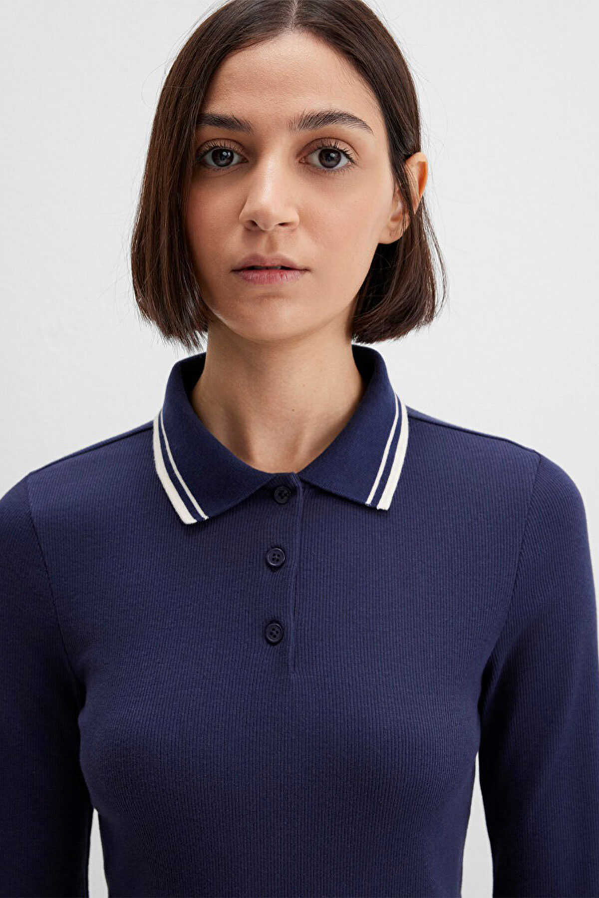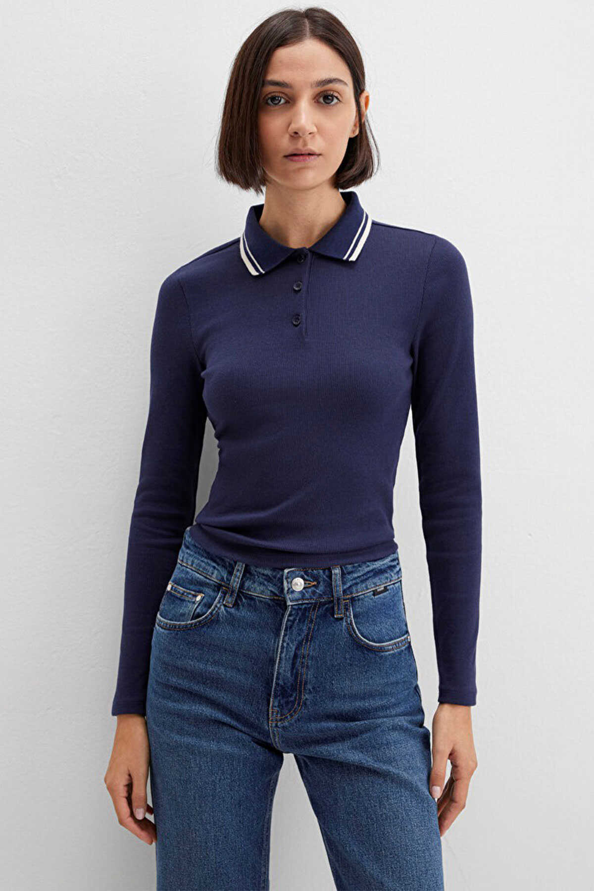 Mavi nin kadın koleksiyonundan Çizgi Detaylı Lacivert Polo Tişört.-Ürün Kodu: 1613836-80729-Kumaş Bilgileri-%95 Pamuk-%5 Elastan-Menşei: Türkiye-
