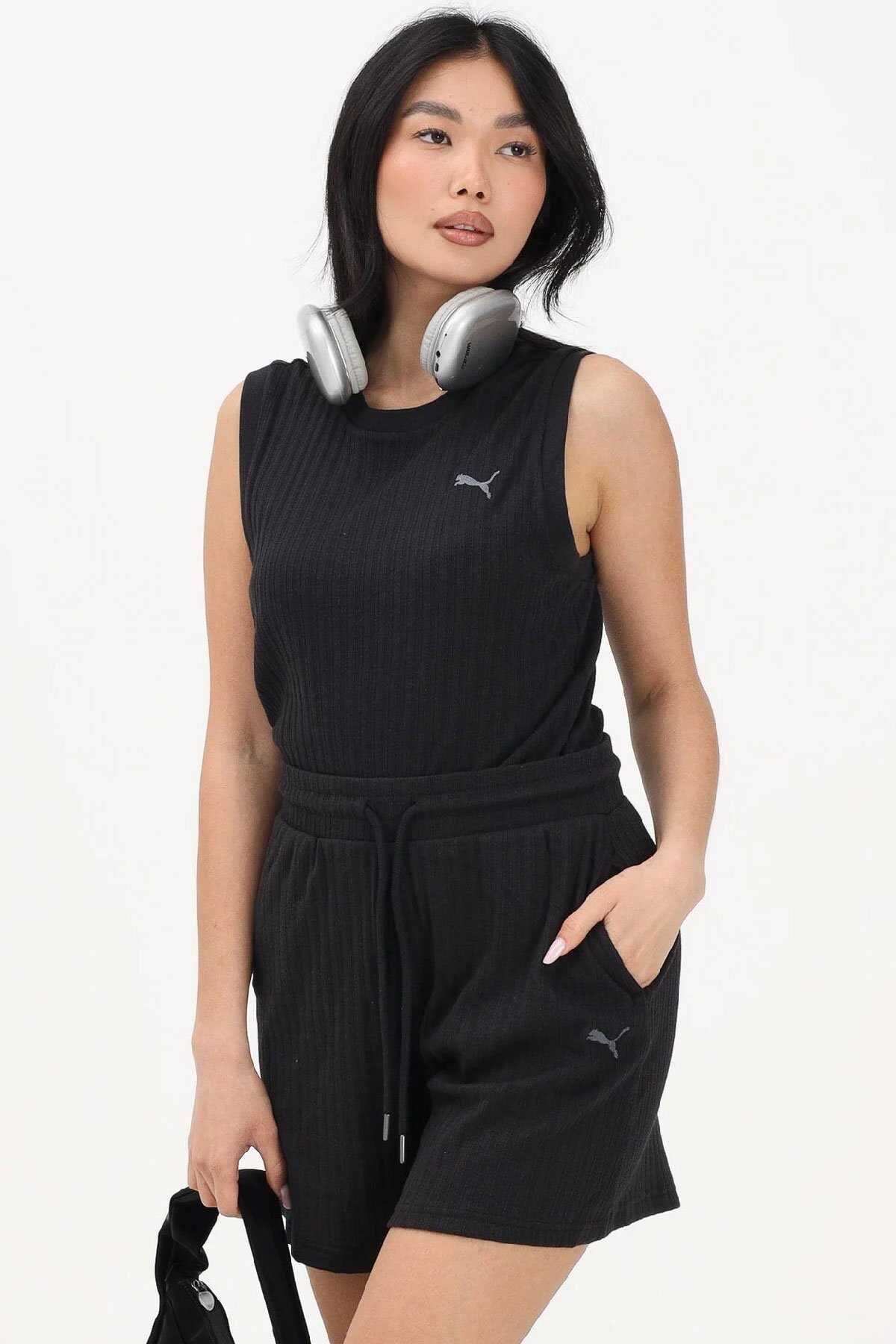 PUMA Kadın Siyah HER askılı bluz rahatlık ve hareket özgürlüğü için yumuşak nervürlü kumaştan üretilmiş sade ve çok yönlü bir tasarıma sahiptir.-Yuvarlak yakalı ve geniş omuzlu tasarımı rahat bir uyum sağlarken figürü vurgulayan temiz bir kesime sahiptir.-Göğüsteki kontrast logo ayırt edici ve dinamik bir detay katmaktadır.-Spor boş zaman aktiviteleri veya günlük ve sportif şıklık yaratmak için mükemmel olan bu bluz şort tayt veya eşofman altıyla kolayca kombinlenebilir. -Model S beden giymektedir ve 170 cm boyundadır. Makine yıkama ve orta ısıda ütüleme önerilir. İlkbaharYaz sezonu için uygundur.-Kumaş: %58 Pamuk %38 Polyester %4 Elastan-Kadın siyah askılı bluz normal kesim ilkbaharyaz -Ürün Kodu: 69189301-Menşei: Bangladeş
