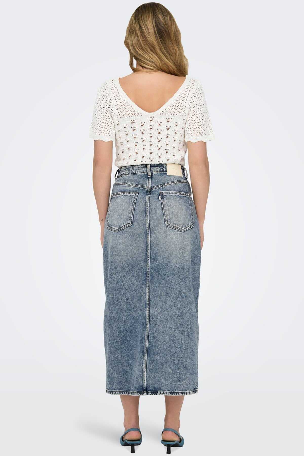 En sevdiğiniz üst ve spor ayakkabıyla mükemmel uyum sağlayan kot etekle gardırobunuza bir klasiği geri getirin.- Ürün Tipi : Etek- Kapanış : Düğme kapama Fermuar kapatma- Cepler : Ön cepler- Bel : Yüksek bel- UzunlukBoyut : Midi boy- Ekstra ayrıntılar: Ön yırtmaç Kemer halkaları-Ürün numarası: 15311569