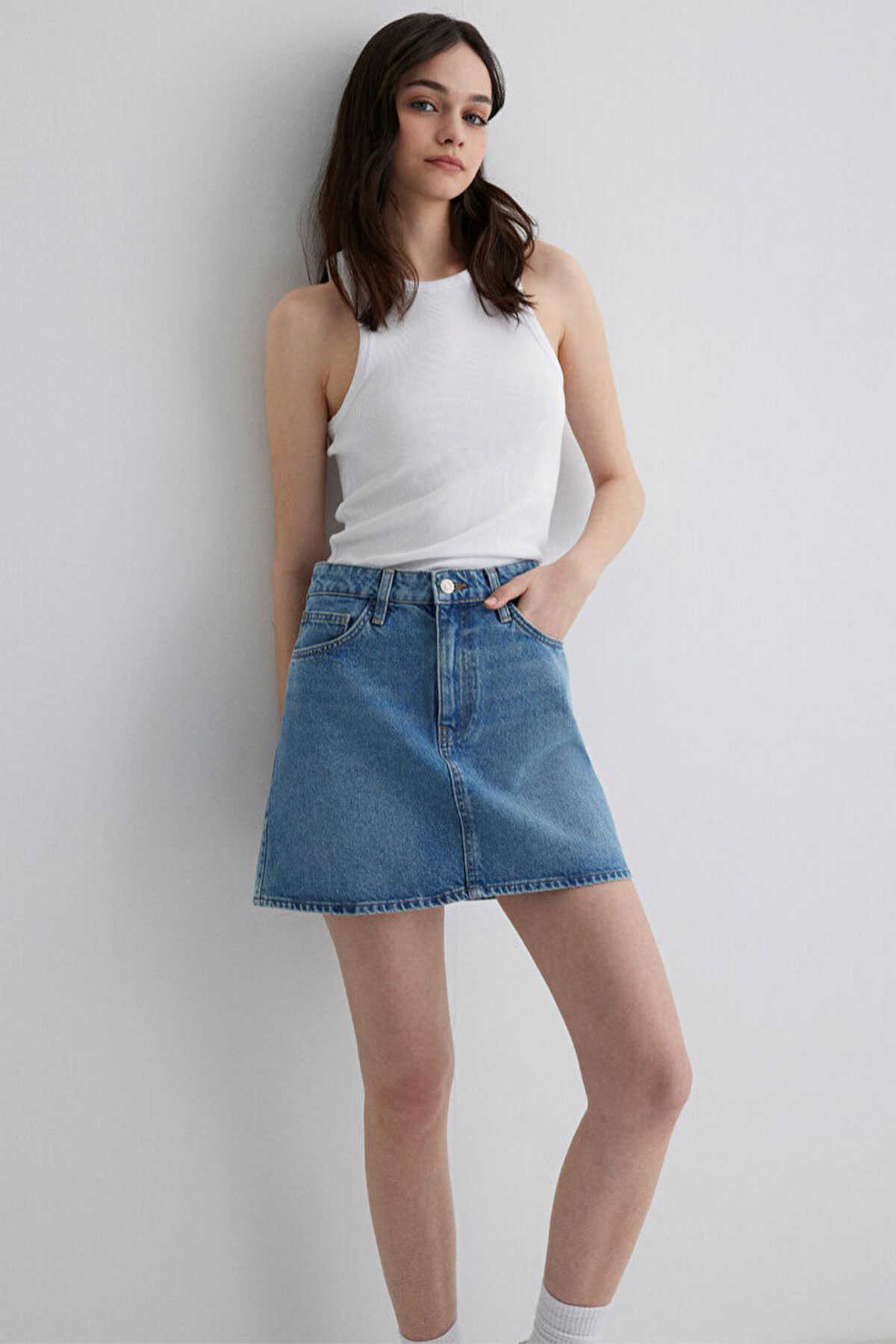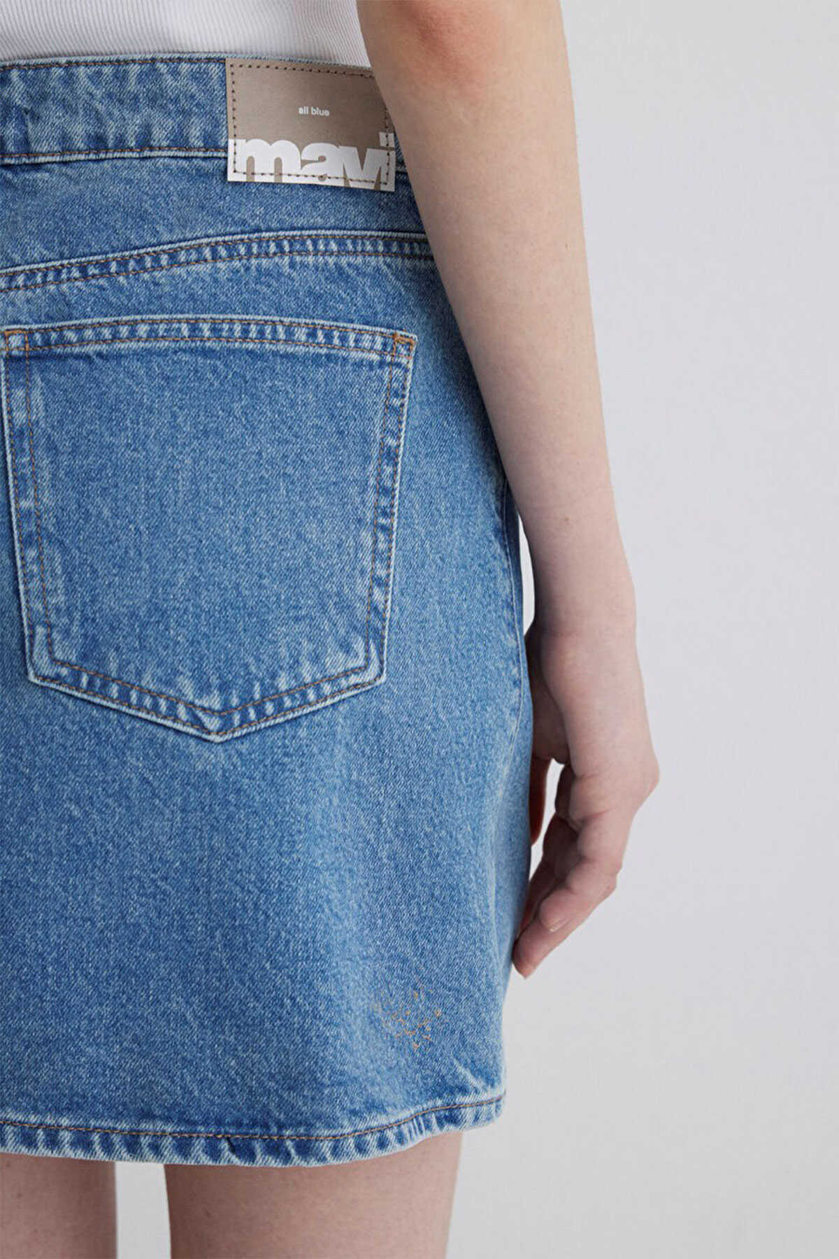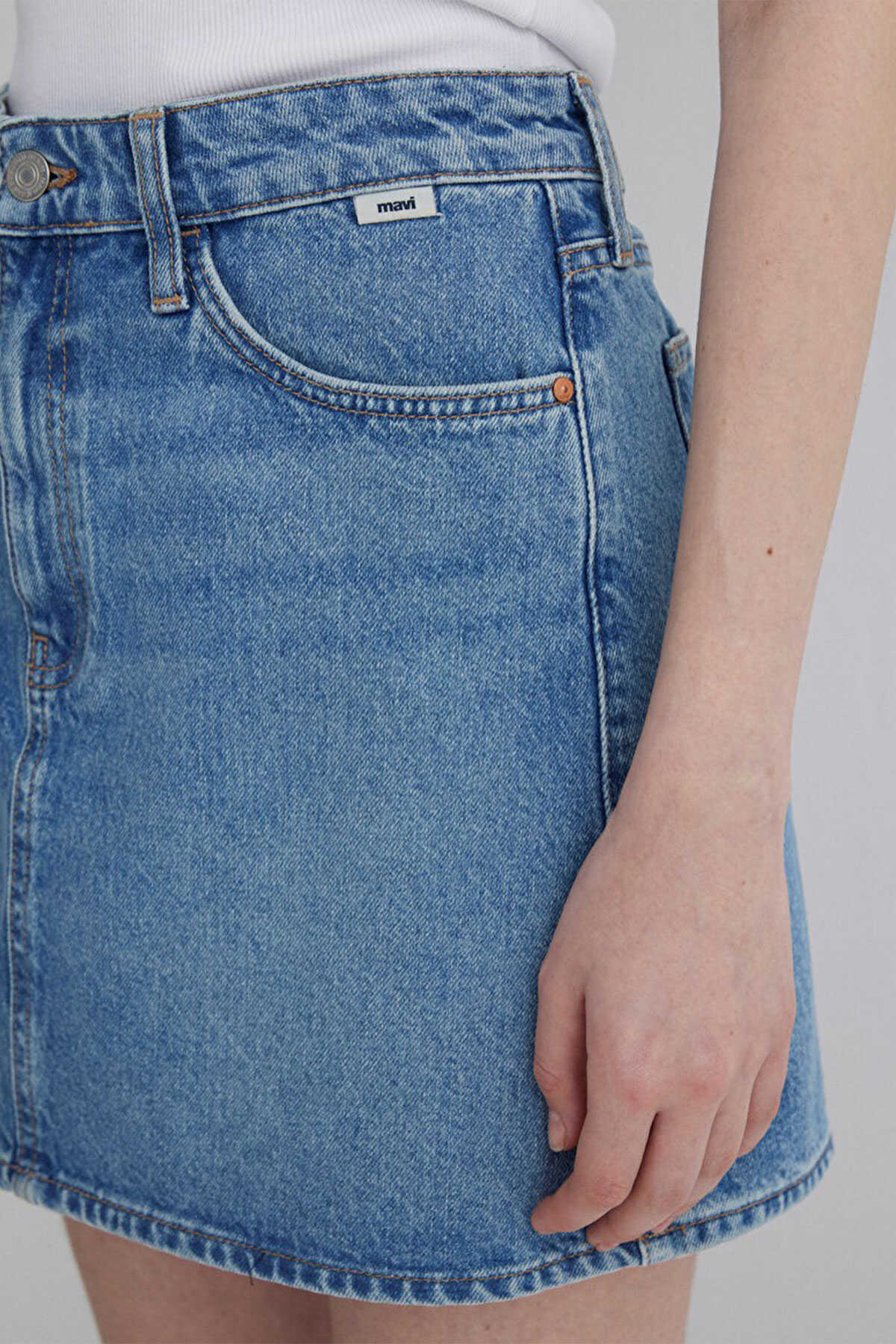 Mavi nin denim koleksiyonundan Bailey Real Blue Gölgeli Indigo Mavisi Jean Etek. - Mini jean etek. - Mavi Classic Denim üstün kalitesi gerçek indigo renkleri özel aksesuar detayları bugünün en öne çıkan fitleri ve klasiği yeniden yorumlayan zamansız görüntüsüyle Mavi nin jean ustalığının imzası. - Bu ürün aynı zamanda Mavi nin All Blue koleksiyonunun da bir parçasıdır. - Bu ürünün üretiminde geri dönüştürülmüş pamuk kullanılmıştır. - %100 Pamuk - Manken Ölçüleri - Jean: Bel: S Üst: S - Boy: 176 cm Bel: 59 cm Göğüs: 80 cm Kalça: 88 cm - Ürün Kodu: 1310204-87098 - Menşei: Türkiye