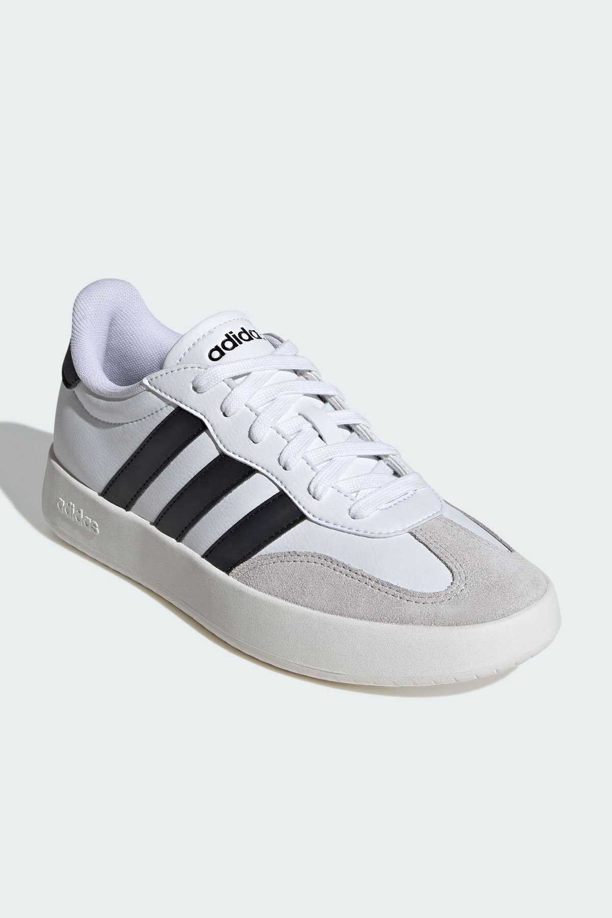 T burunlu tasarım bu adidas ayakkabılarda muhteşem bir dönüş yapıyor. - Sentetik deri üst kısım süetle vurgulanarak ilgi çekici dokuların bir karışımını sunuyor. - Dayanıklı kauçuk dış taban her adımda destek ve tutuş sağlıyor. - Normal kesim - Dantel kapatma - Sentetik deri ve süet içeriklidir. - Klasik T burun yapısı - Tekstil astarı - Kauçuk taban - Renk: Bulut Beyazı Çekirdek Siyah Gri Bir - Ürün kodu: IH1229 - Menşei: Myanmar