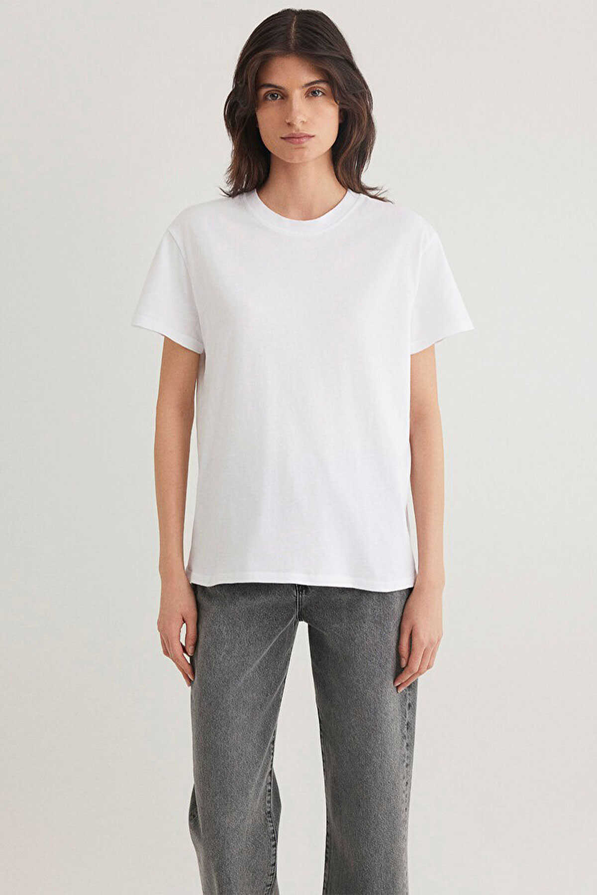 Yüzde yüz pamuk. -Regular fit normal kesim. -Bisiklet yaka. -Kısa kol. -Beyaz Basic Tişört.-Ürün Kodu: 1600955-620-Kumaş Bilgileri-%100 Pamuk-Manken Ölçüleri-Jean: Bel: 26 Boy: 32 Üst: S-Boy: 180 cm Bel: 63 cm Göğüs: 82 cm Kalça: 89.5 cm-Menşei: Türkiye