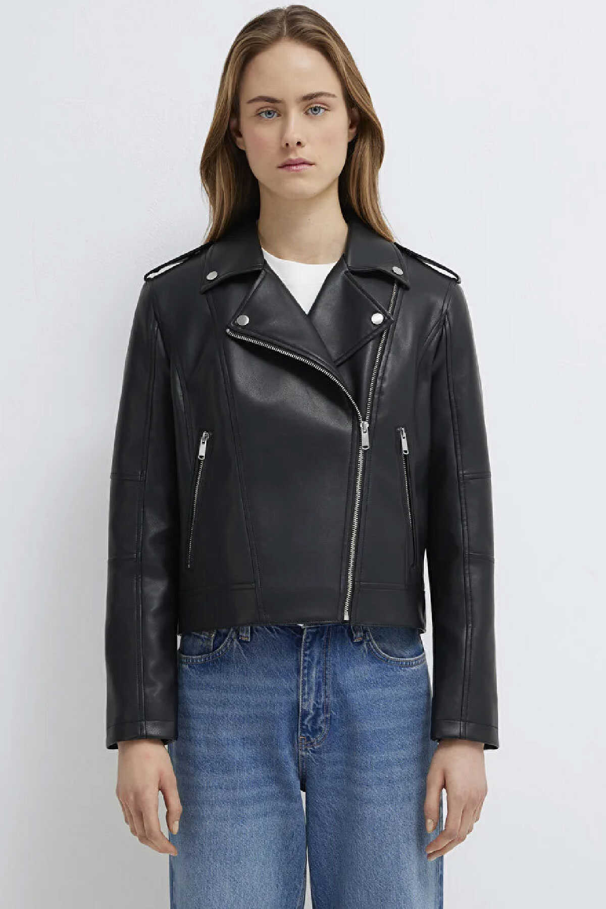 Mavi nin dış giyim koleksiyonundan Biker Yaka Siyah Suni Deri Ceket. -İki adet fermuarlı yan cep.-Fitted Vücuda Oturan Kesim-Ürün Kodu: 1110221-900-Kumaş Bilgileri-Kumaş: %100 Poliüretan-Astar: %100 Polyester-Manken Ölçüleri-Jean: Bel: 26 Boy: 32 Üst: S-Boy: 180 cm Bel: 58 cm Göğüs: 79 cm Kalça: 88 cm-Menşei: Çin