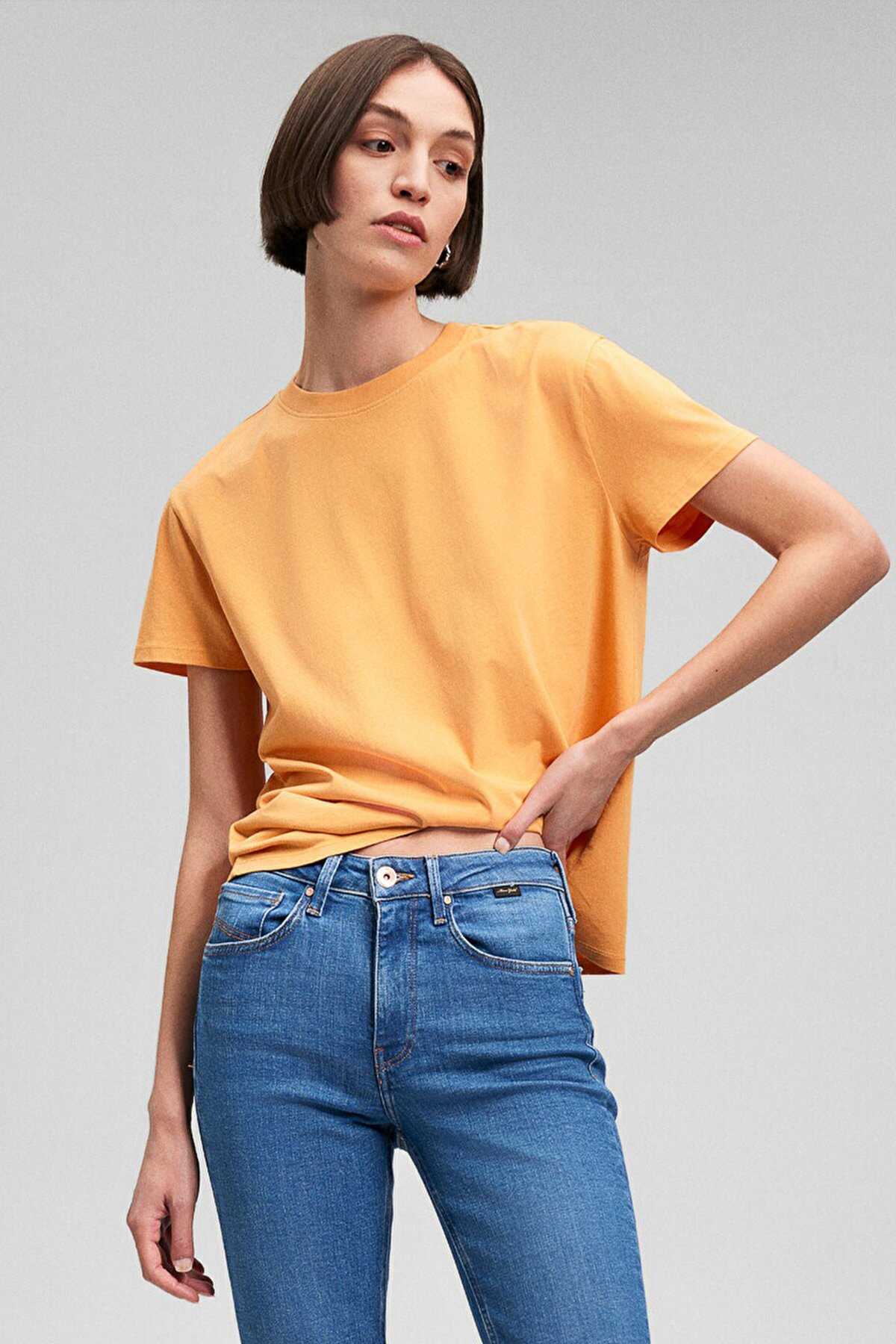 Mavi nin kadın koleksiyonundan Bisiklet Yaka Turuncu Basic Tişört-Regular Fit Normal Kesim-Ürün Kodu: 1600955-71405-Manken Ölçüleri-Jean: Bel: 26 Boy: 32 Üst: S-Boy: 181 cm Bel: 58 cm Göğüs: 83 cm Kalça: 90 cm