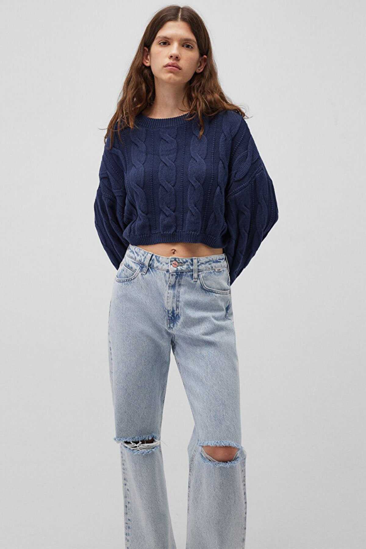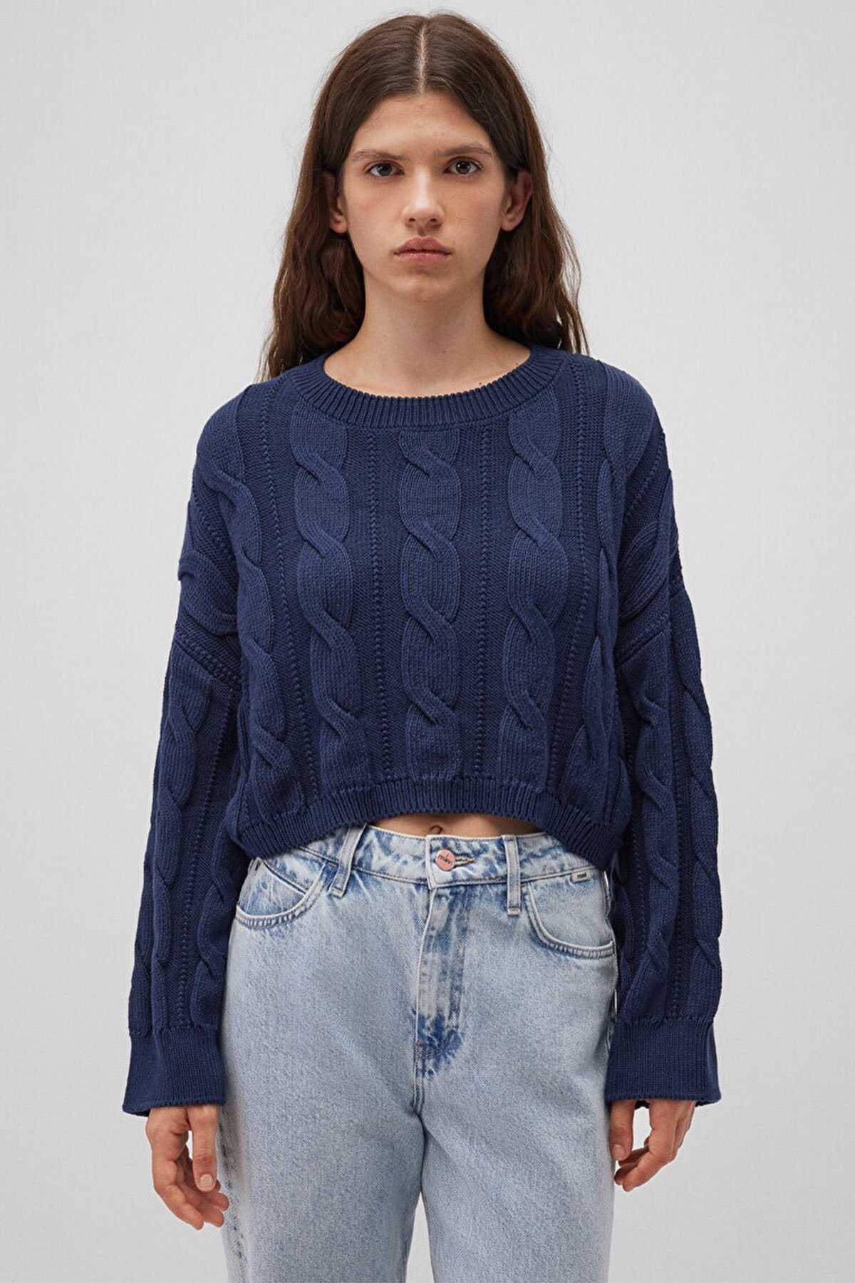 Mavi nin kadın koleksiyonundan Bisiklet Yaka Lacivert Kazak-Ürün Kodu: 1710477-82454-Manken Ölçüleri-Boy: 173 cm Bel: 62 cm Göğüs: 83 cm Kalça: 91 cm