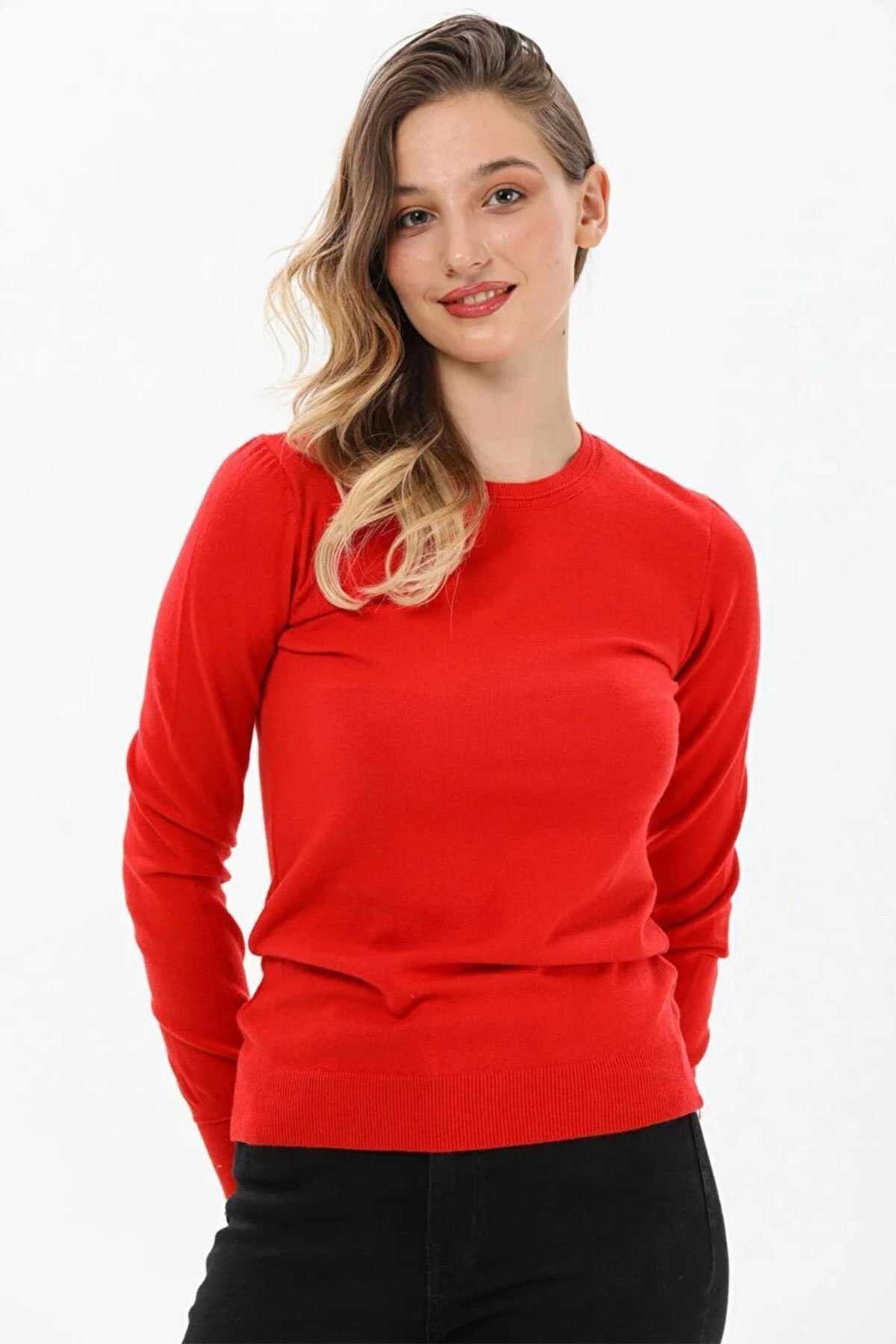 Kadın Bisiklet Yaka Kazak 25K0777K1 Kırmızı