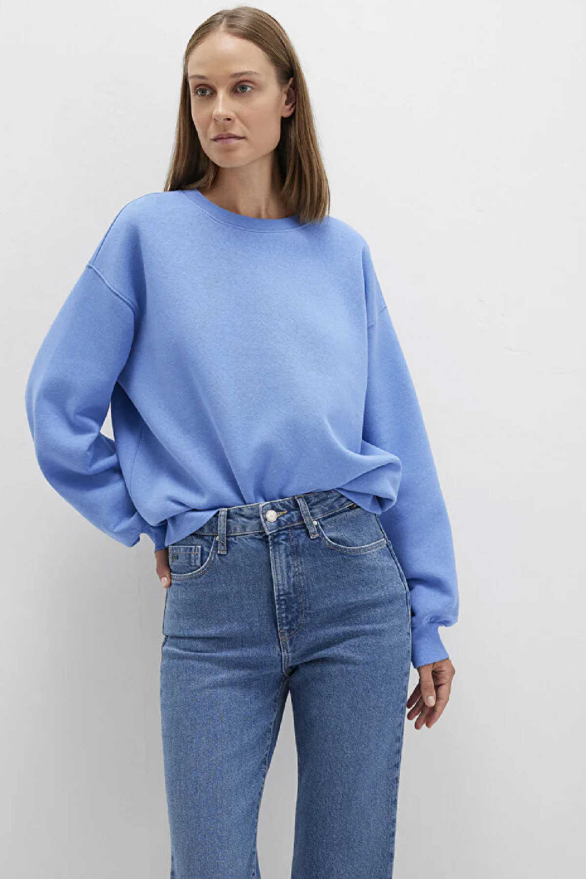 Mavinin kadın koleksiyonundan Bisiklet Yaka Mavi Basic Sweatshirt.-Şardonlu.-ÜrÜn Kodu: 1610198-70790-Kumaş Bilgileri-%68 Pamuk-%32 Polyester-Menşei: Türkiye-
