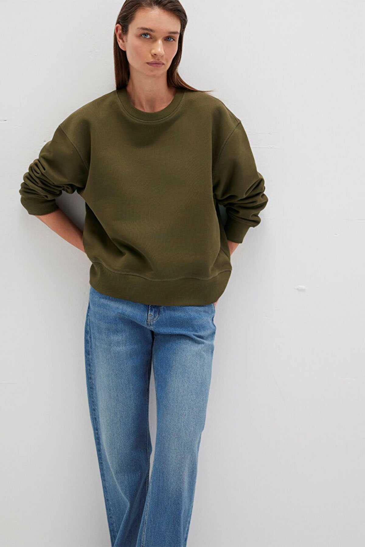 Mavi nin kadın koleksiyonundan Bisiklet Yaka Haki Sweatshirt.-Şardonsuz.-Ürün Kodu: 1S10390-71589-Kumaş Bilgileri-%100 Pamuk-Menşei: Türkiye-