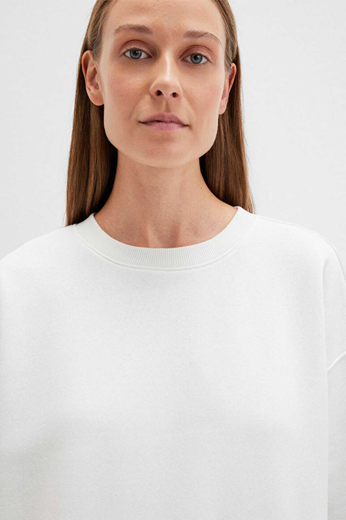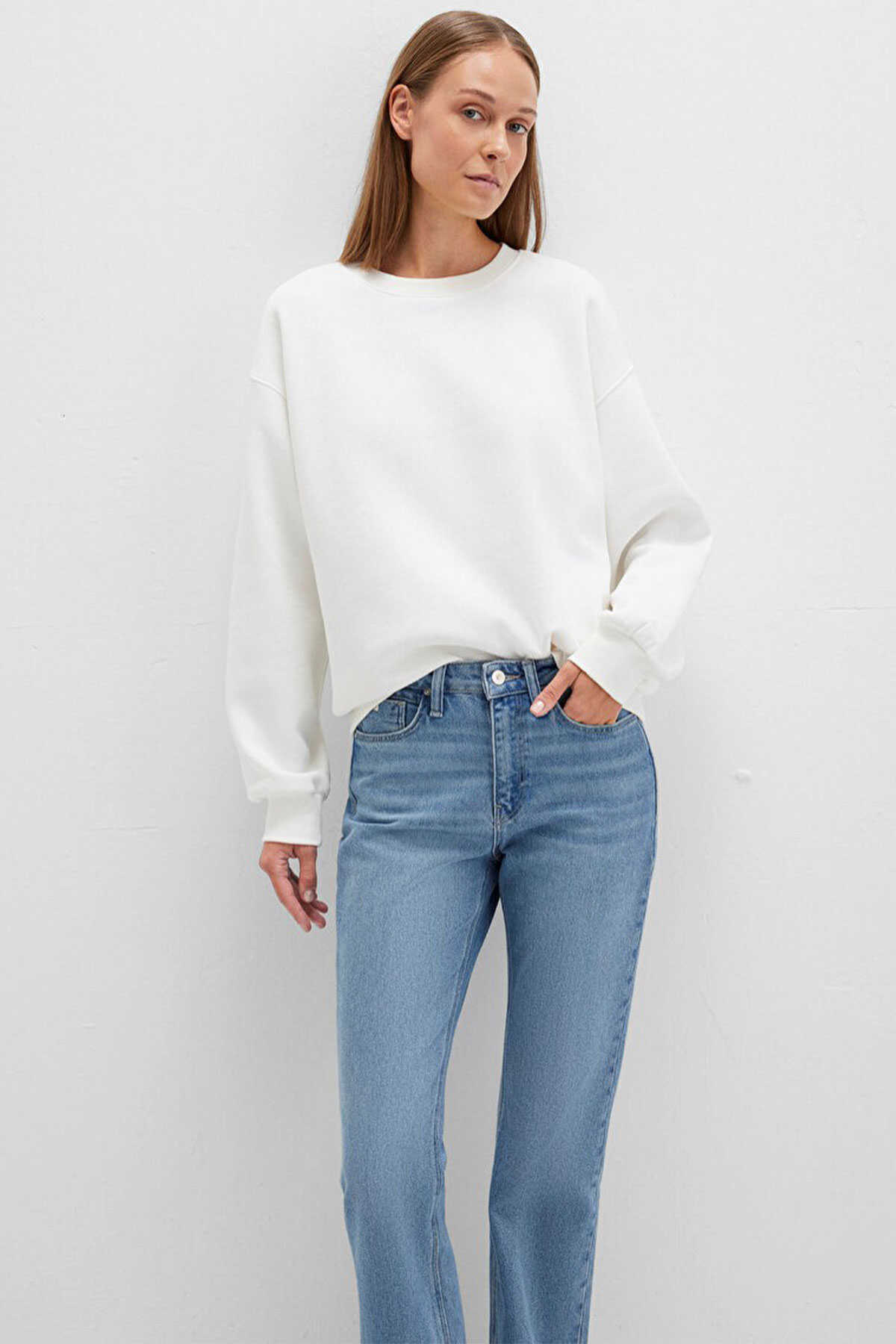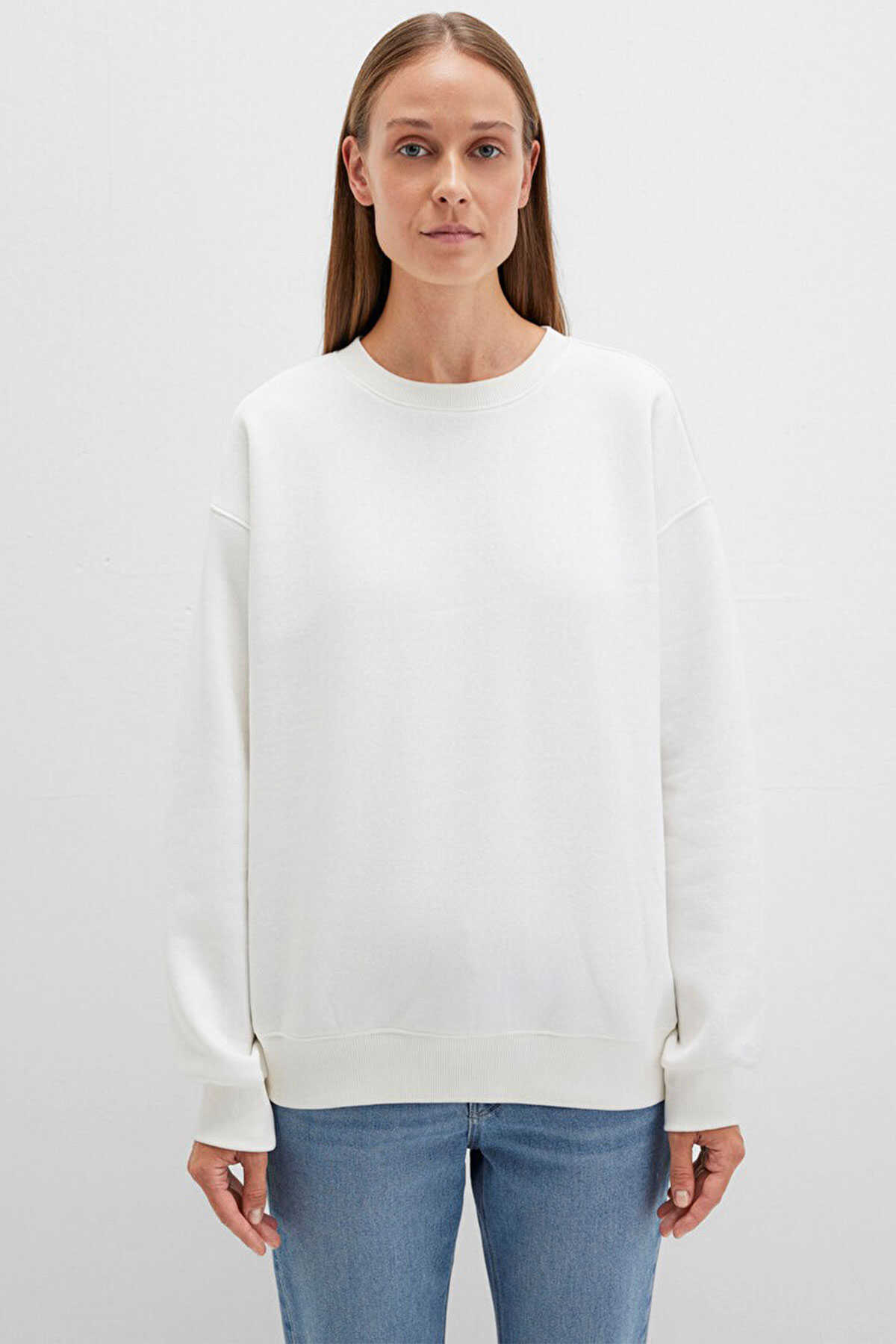 Mavi nin kadın koleksiyonundan Bisiklet Yaka Beyaz Basic Sweatshirt. - Şardonlu. - Ürün Kodu: 1610198-70057 - Kumaş Bilgileri - %67 Pamuk - %33 Polyester - Manken Ölçüleri - Jean: Bel: 26 Boy: 32 Üst: S - Boy: 180 cm Bel: 61 cm Göğüs: 80 cm Kalça: 90 cm - Menşei: Türkiye