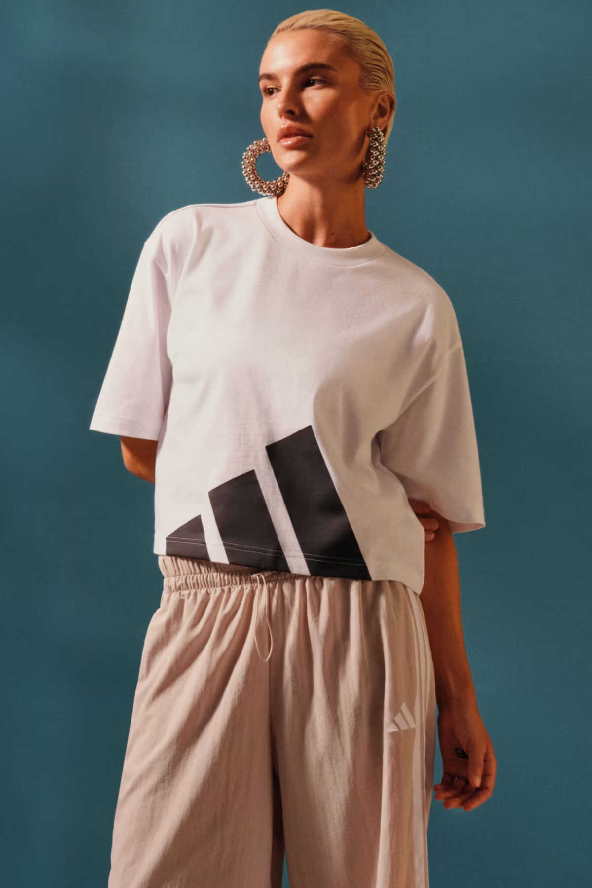 Stil ve konfor bir arada. -Yumuşacık süprem kumaştan üretilen bu tişört premium hissi ile hem evde hem dışarıda giymek için mükemmeldir. -Köşeli kesimi ve düşük omuzlu tasarımı ile rahat bir görünüm sunan model büyük 3 Bar Logosu ile stiline sportif bir dokunuş ekler.-Bol kesim: Hareket özgürlüğü sunan geniş kesim-Standart ölçü:Normal beden ölçünde sipariş etmeni öneriyoruz.-Model S beden giymektedir ve boyu 176 cm göğüs ölçüsü 81 cm bel ölçüsü 63 cmdir.-Bol kesim-Ribana bisiklet yaka-%100 pamuk-Düşük omuz ve kol oyuntuları-Hafifçe uzun kollar-Ürün rengi: White Black-Ürün kodu: JG8737-Menşei: Türkiye