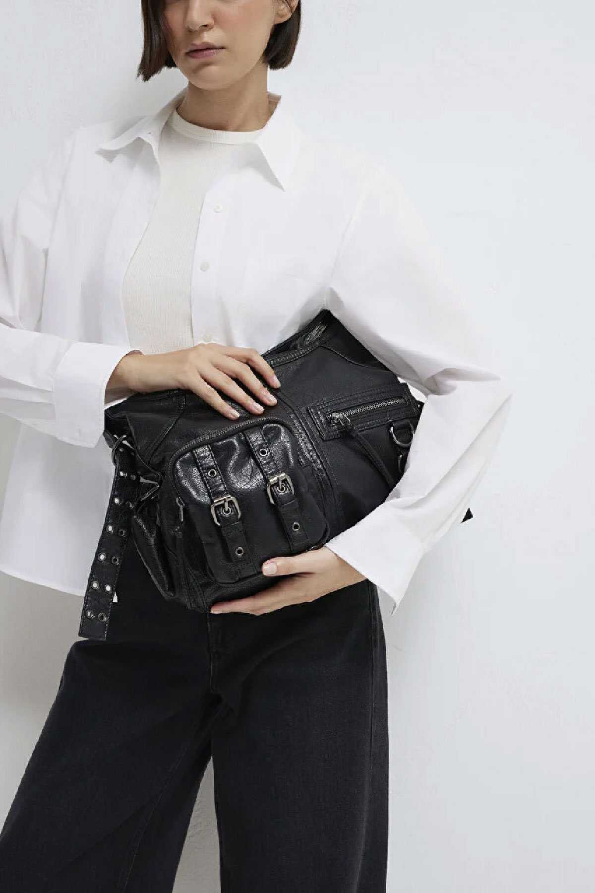 Mavi nin aksesuar koleksiyonundan Siyah Omuz Çantası. -Fermuar kapamalı fermuarlı ve fermuarsız iç cep iki adet fermuarlı ön cep ve bir adet fermuarlı arka cep sabit sap astarlı.-Genişlik 38 cm Yükseklik 29 cm Derinlik 8 cm-Ürün Kodu: 1913730-900-Kumaş Bilgileri-Kumaş: %100 Poliüretan-Astar: %100 Polyester-Menşei: Malezya