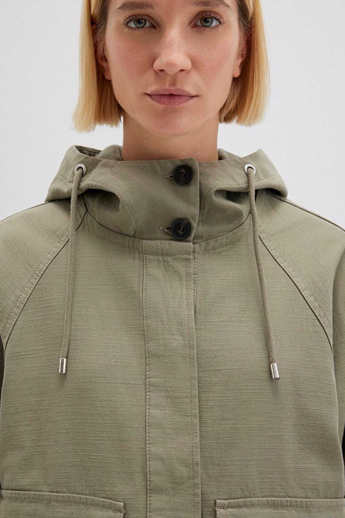 Mavi nin dış giyim koleksiyonundan Kapüşonlu Haki Ceket. - İki adet düğmeli kapaklı ön cep iple ayarlanabilir sabit kapüşon. - Oversize Geniş Kesim - Ürün Kodu: 1110625-71818 - Kumaş Bilgileri - %100 Pamuk - Manken Ölçüleri - Jean: Bel: 26 Boy: 30 Üst: S - Boy: 177 cm Bel: 61 cm Göğüs: 82 cm Kalça: 89.5 cm - Menşei: Türkiye