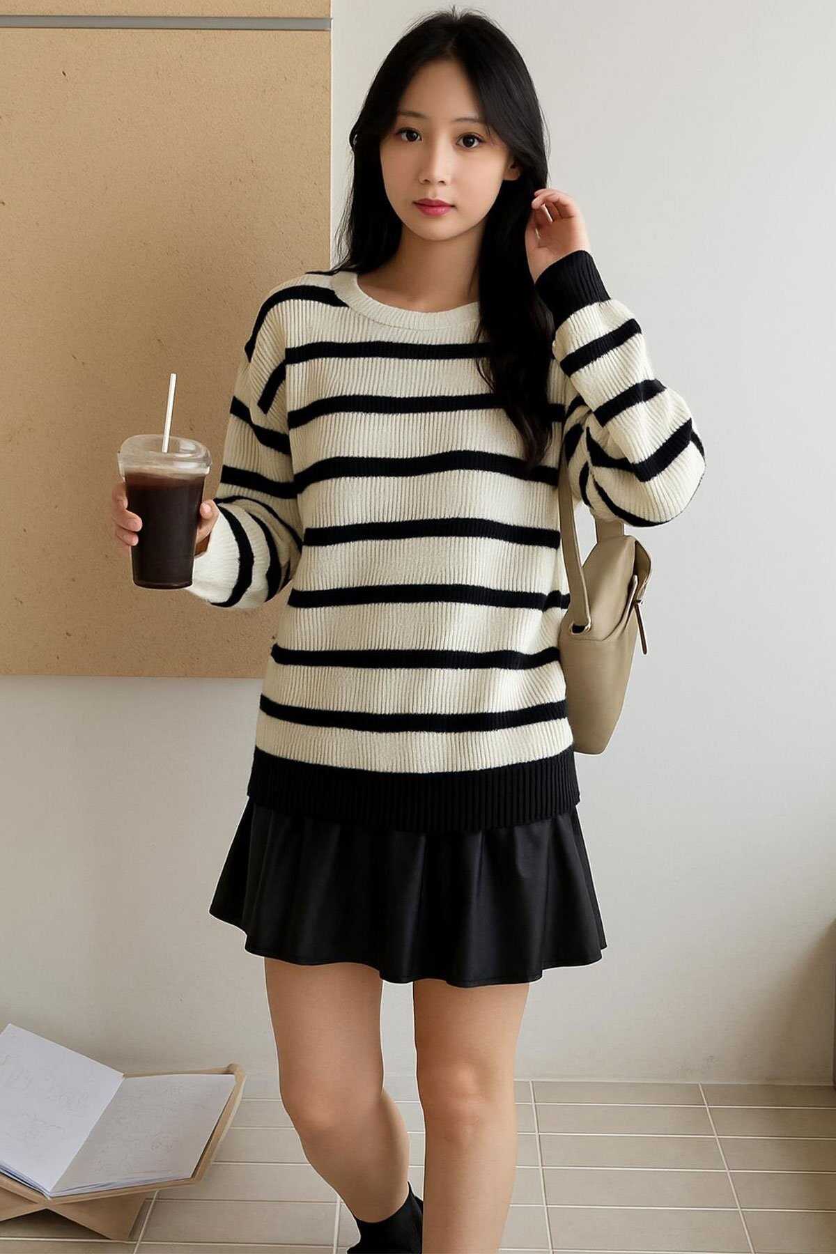 Fashion Friends imzalı Çizgili Kazak günlük kullanım ve özel anlar için ideal bir tercihtir. - Tarzını rahat kalıbıyla tamamlayan bu parça konfor sunar. - Bisiklet Yaka tasarımı ürüne sofistike bir görünüm kazandırır. - %100 Akrilik kumaşı nefes alabilir yapı sunar. - Fashion Friendsun kalitesiyle üretilen bu Çizgili Kazak gardırobunuzda uzun süre yer alacak. - Model Ölçüleri: Boy:1.70 Göğüs:90 Bel:68 Basen:90 Mankenin üzerindeki ürün S2836 bedendir. - Cinsiyet: Kadın - Kalıp: Rahat - Yaka Tipi: Bisiklet Yaka - Desen: Çizgili - Kol Tipi: Uzun Kol - Kumaş: %100 Akrilik - Ürün Tipi: Triko - Ürün Kodu: 25K0477K1 - Menşei: Türkiye