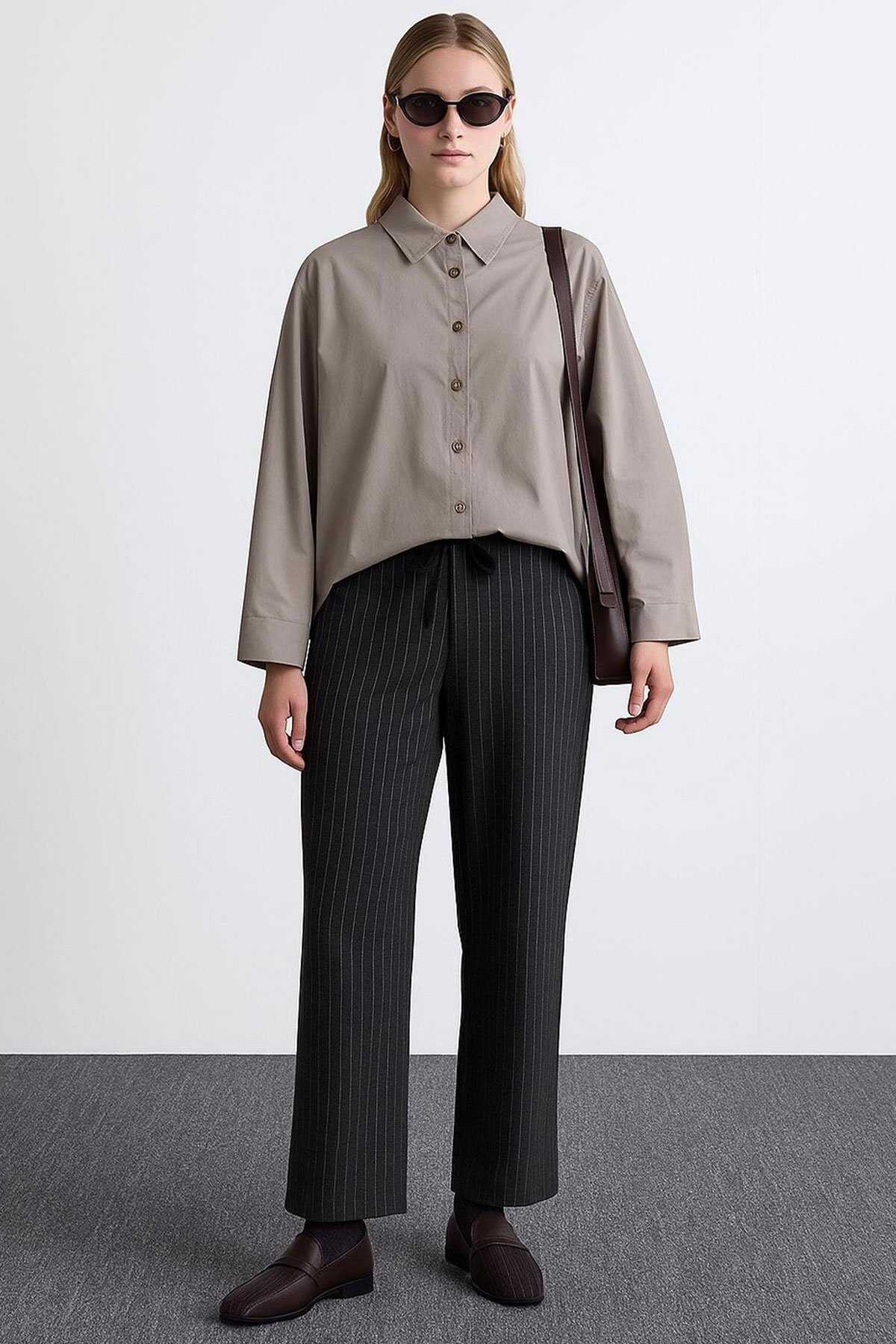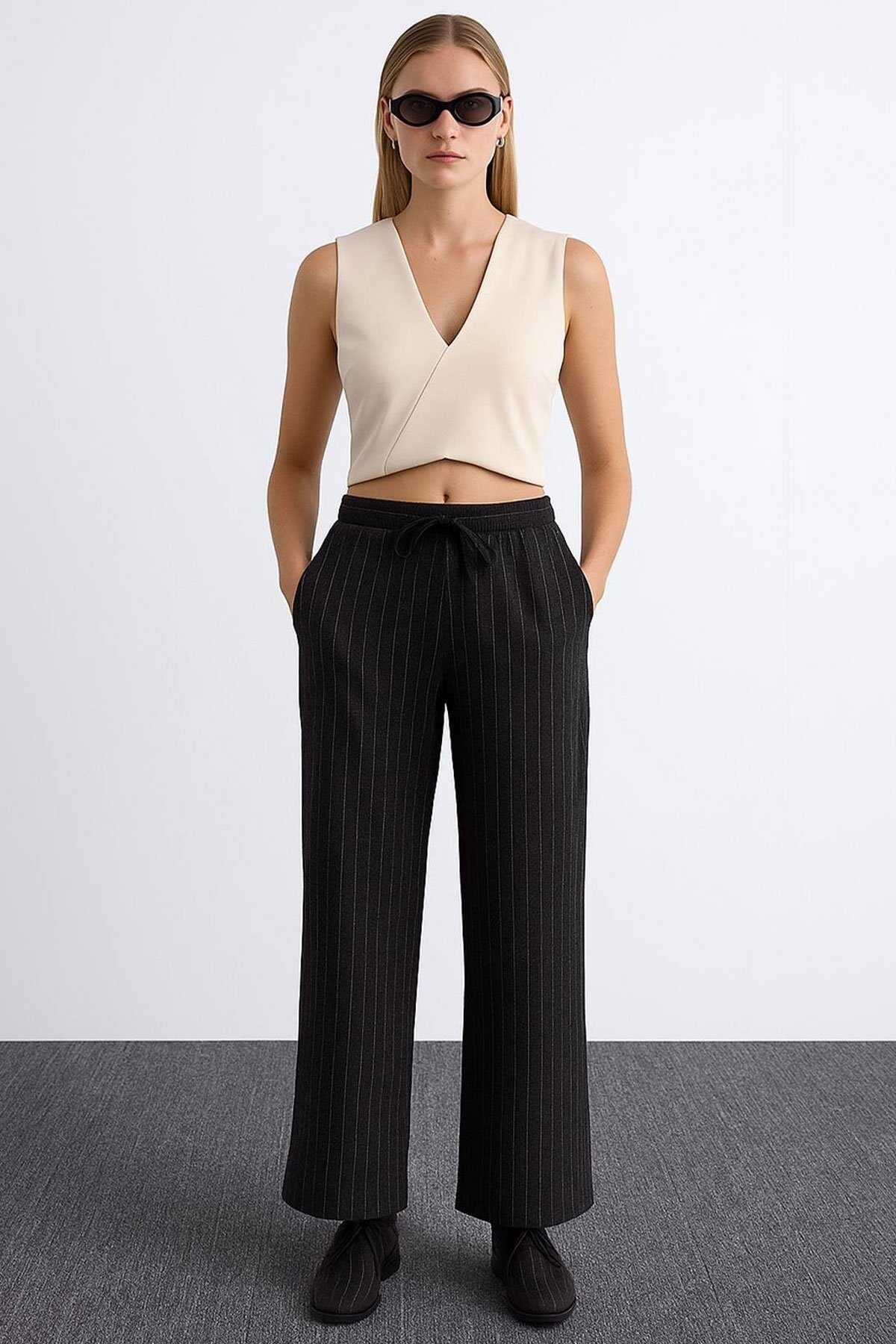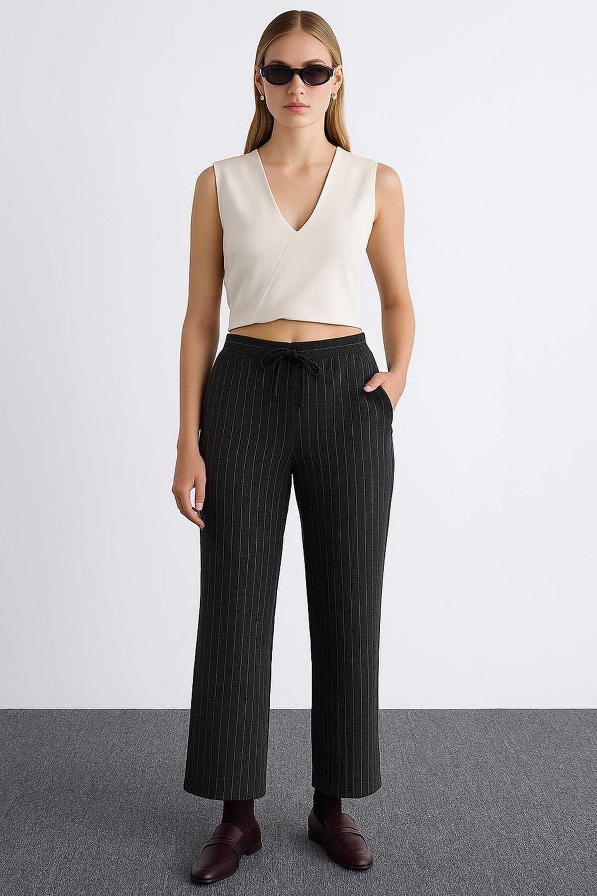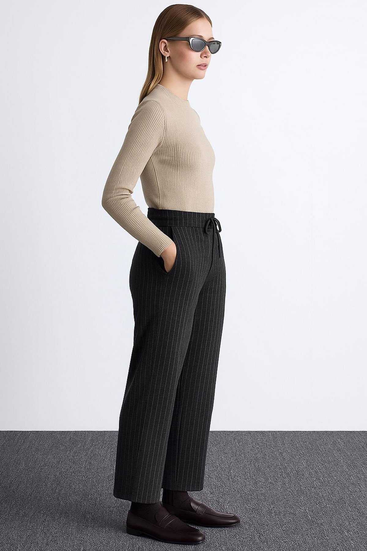 Kadın Çizgili Pantolon 25K0393K1 Gri
