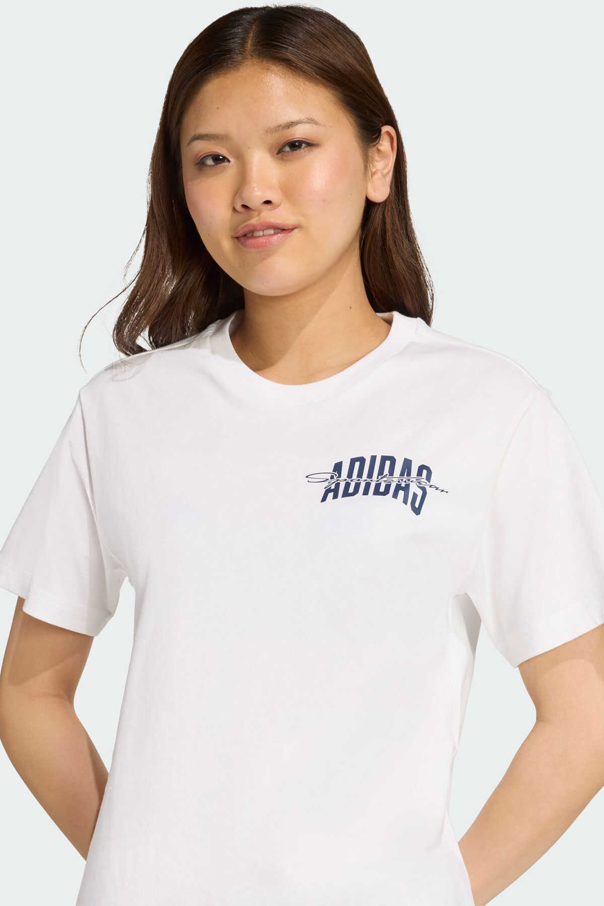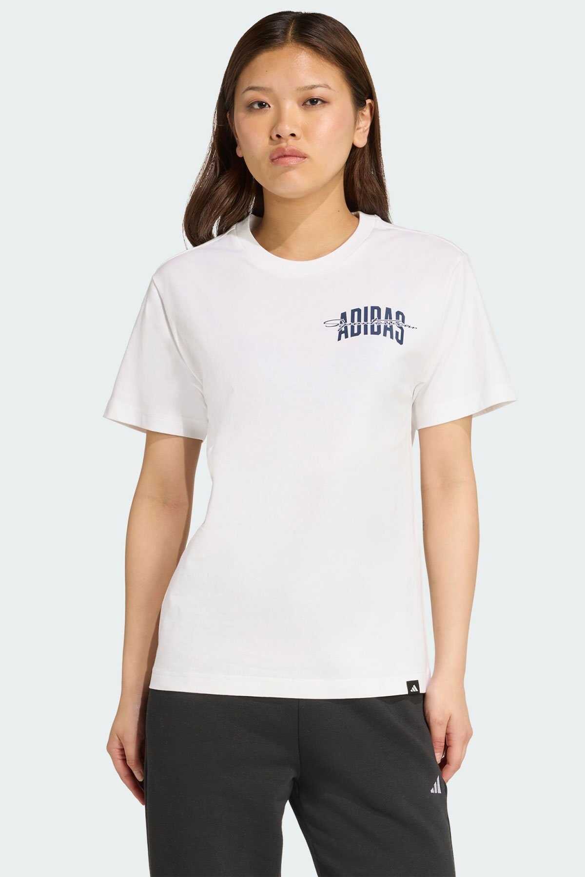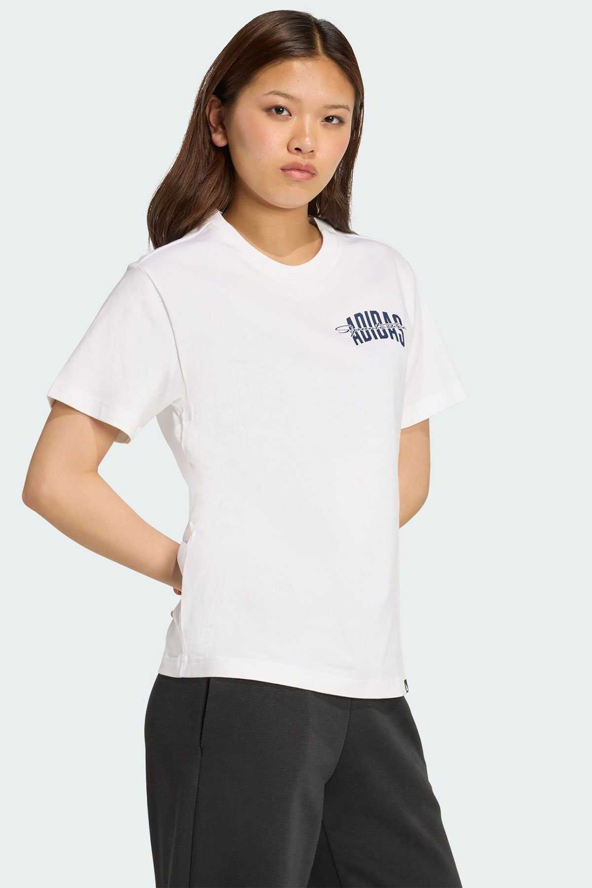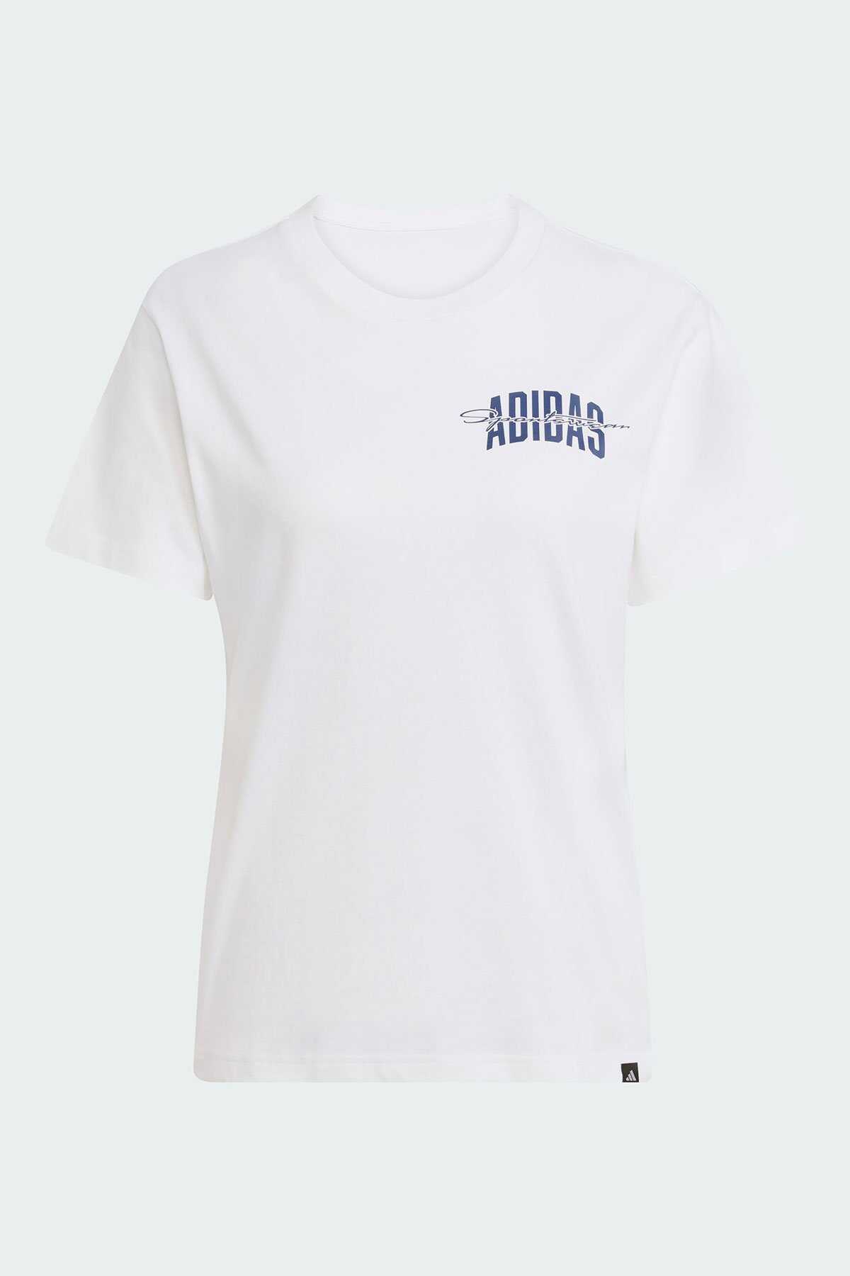 Bu adidas tişört günlük konfor için tasarlandı. - Üniversite grafikleri kahve molaları veya film maratonları için mükemmel sportif bir görünüm sunuyor. - Pamuklu yapısı yumuşak bir his vererek gün boyu konfor sağlıyor. - Normal kesim - Yuvarlak yaka - %100 pamuk - Ürün rengi: Beyaz - Ürün kodu: JV8545 - Menşei: Kamboçya