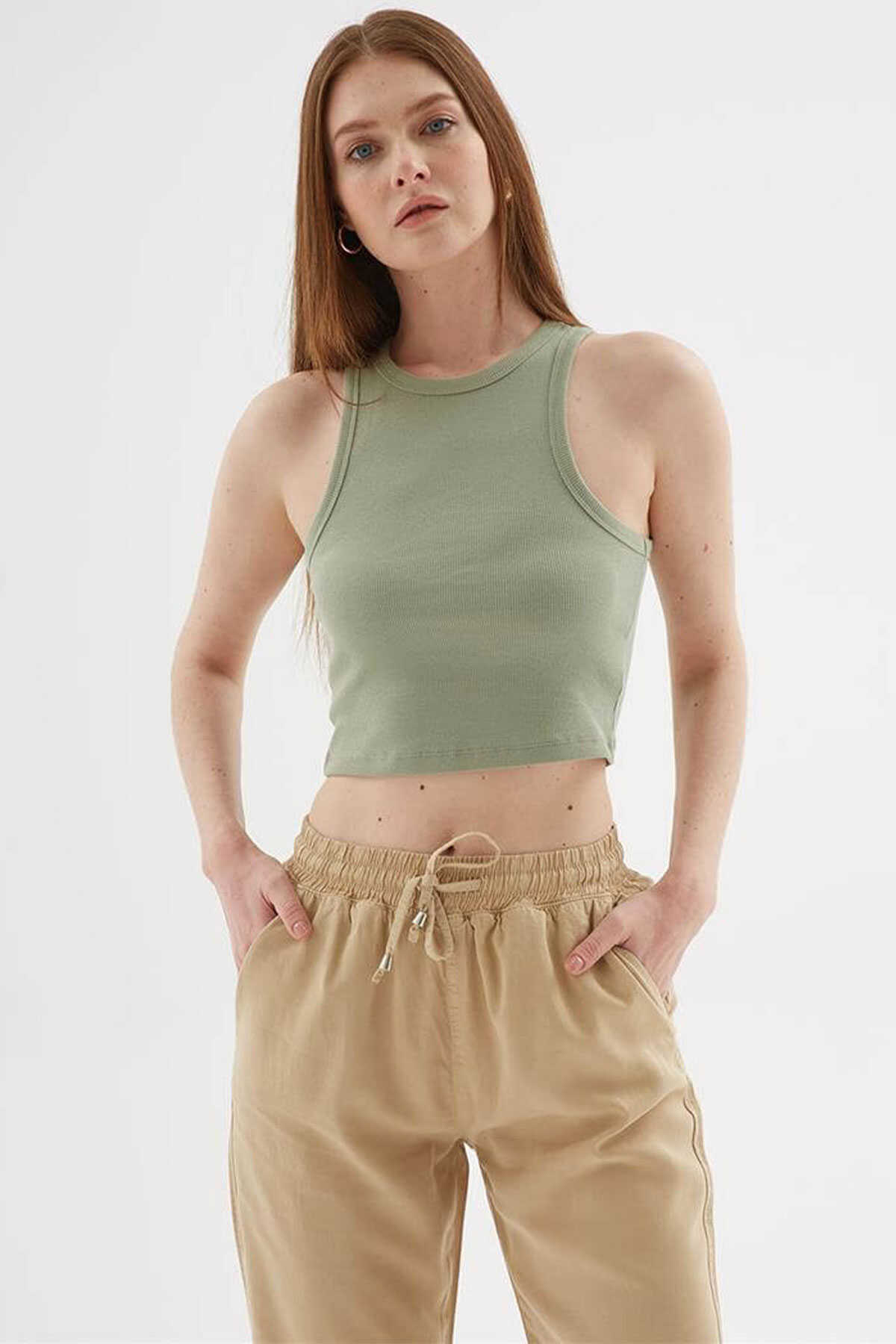 Crop Atlet-Model Ölçüleri: Boy:1.70 Göğüs:90 Bel:68 Basen:90-Mankenin üzerindeki ürün S2836 bedendir.-Cinsiyet: Kadın-Kalıp: Crop-Yaka Tipi: Halter Yaka-Kumaş: %96 Pamuk %4 Elastan-Ürün Tipi: Örme-Ürün Kodu: 25Y0033K1-Menşei: Türkiye