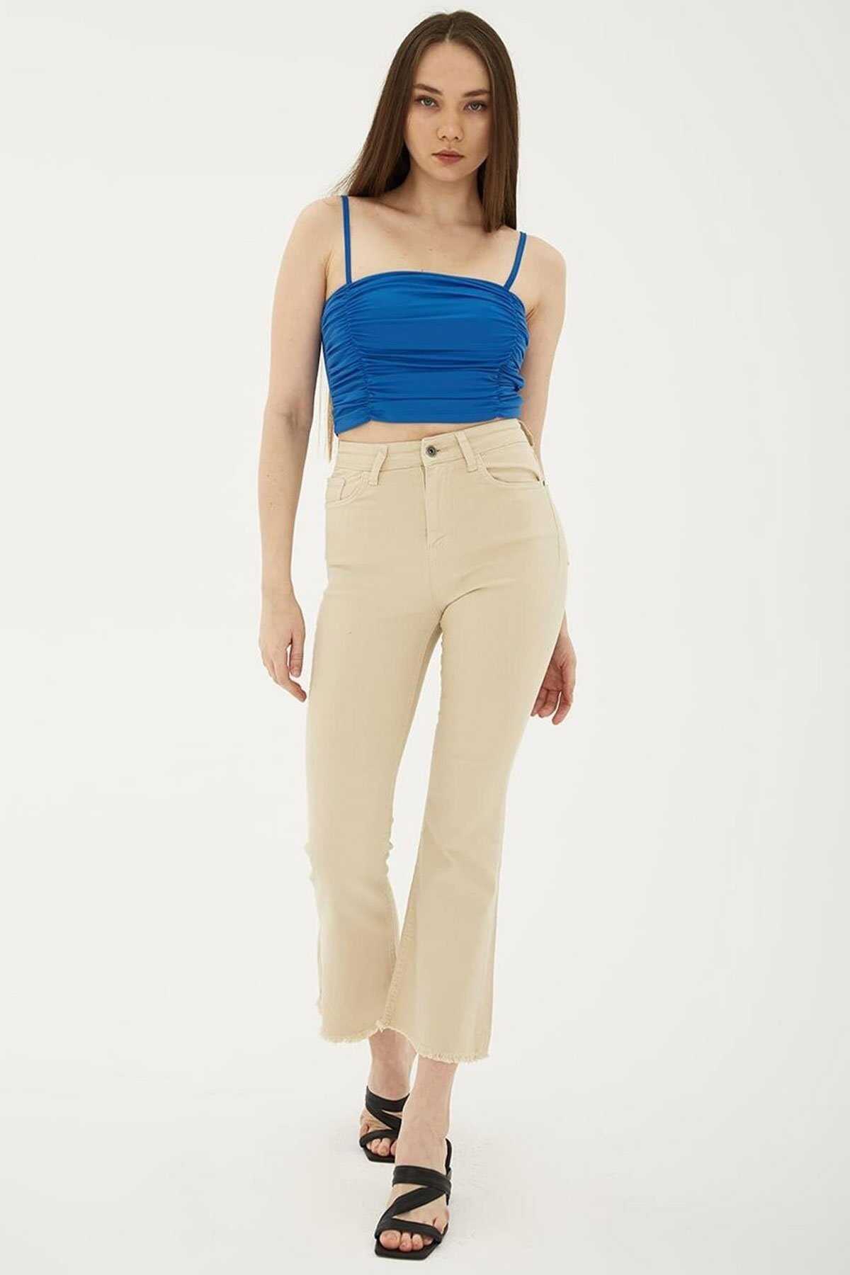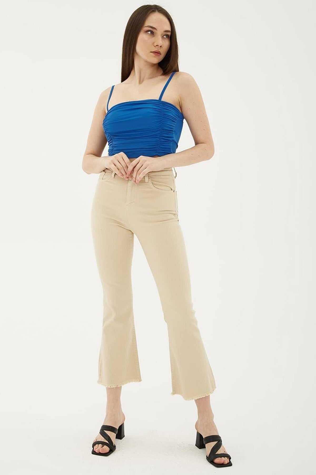 Kadın Crop Flare Denim Pantolon 25Y0294K1 Bej