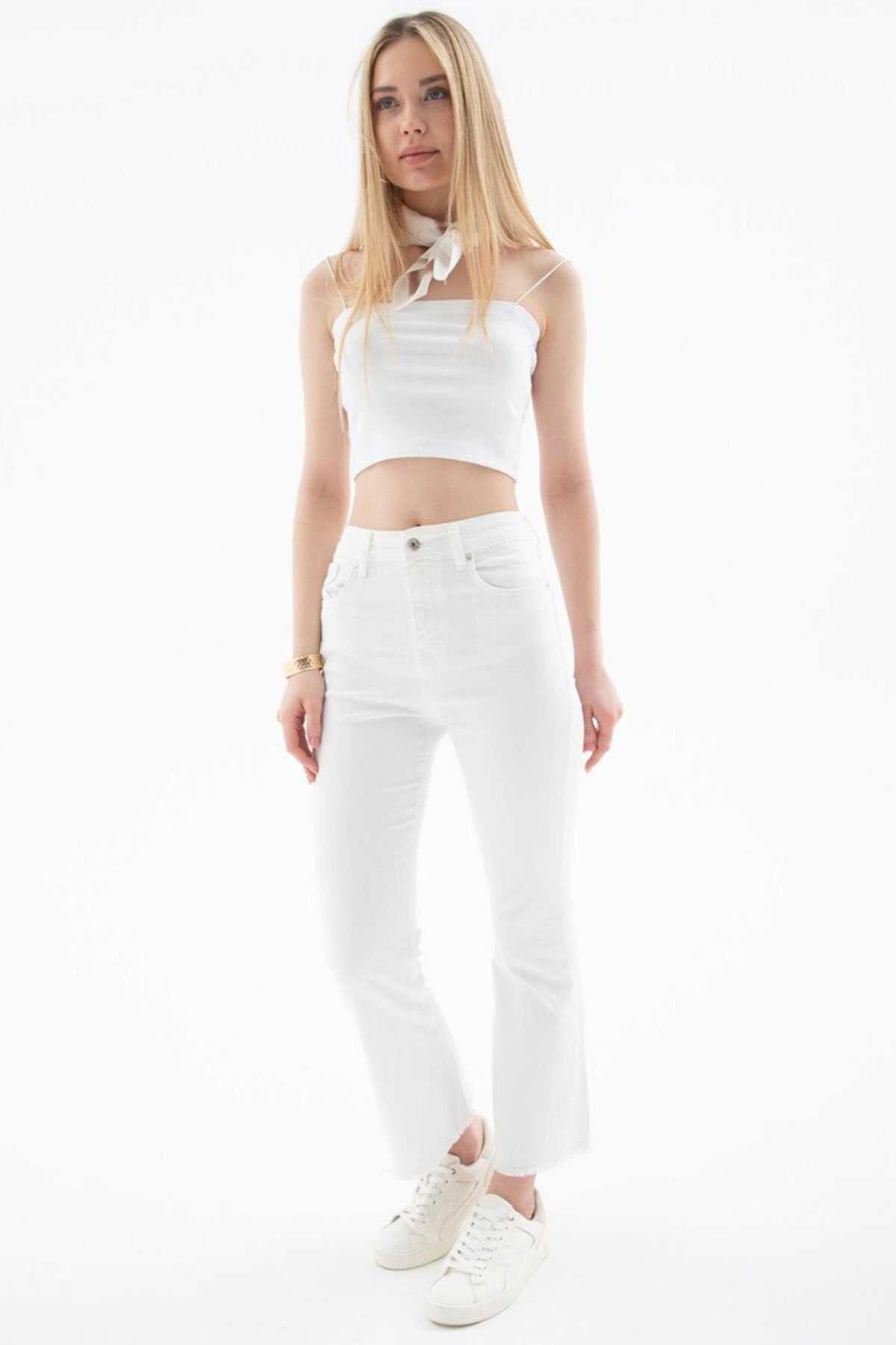 Crop Flare Denim Pantolon -Model Ölçüleri: Boy:1.70 Göğüs:90 Bel:68 Basen:90-Mankenin üzerindeki ürün S2836 bedendir.-Cinsiyet: Kadın-Kalıp: Yüksek Bel İspanyol Paça-Bel Tipi: Yüksek Bel-Kumaş: %97 Pamuk %3 Elastan-Ürün Tipi: Denim-Ürün Kodu: 25Y0294K1-Menşei: Türkiye