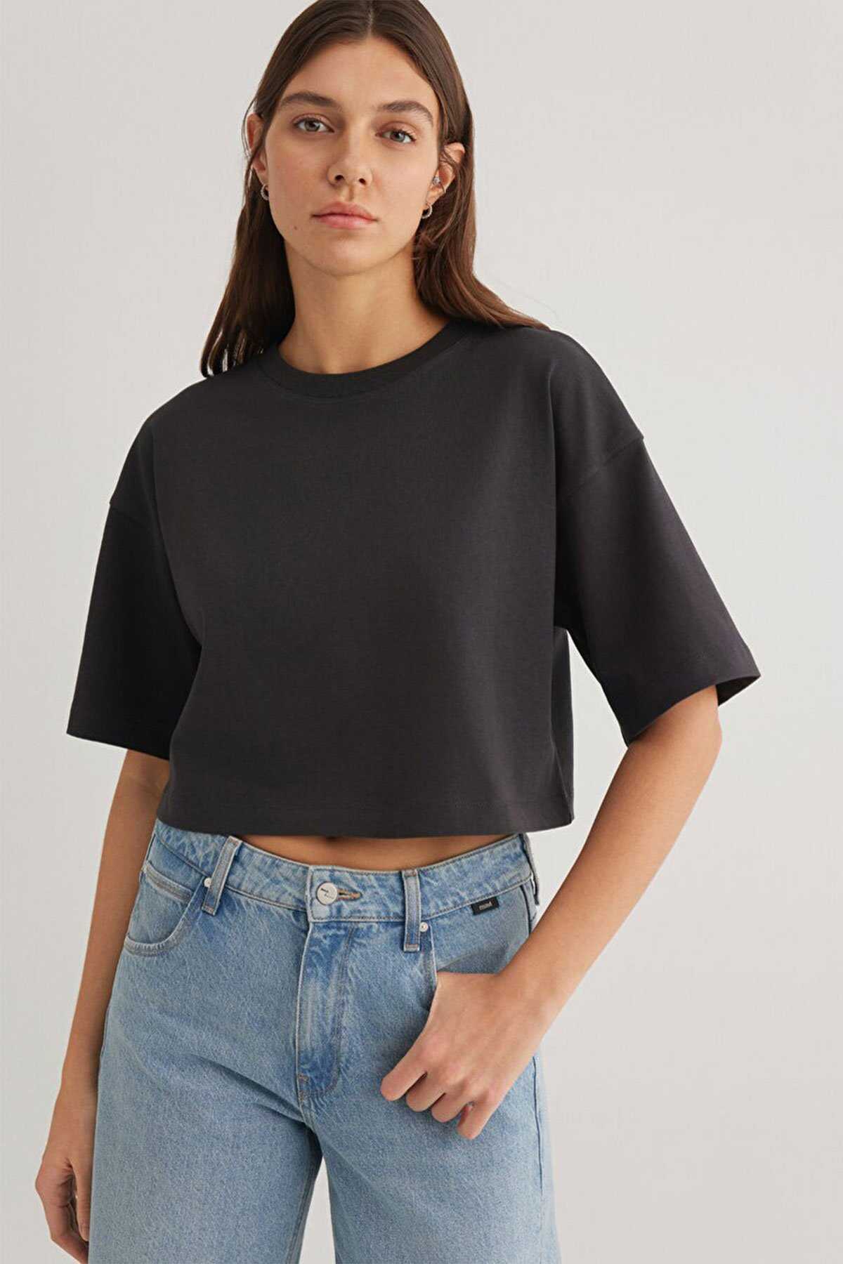 Yüzde yüz pamuk. -Crop kısa kesim. -Antrasit Crop Basic Tişört.-Ürün Kodu: 1612377-70087-Kumaş Bilgileri-%100 Pamuk-Manken Ölçüleri-Jean: Bel: 26 Boy: 32 Üst: S-Boy: 177 cm Bel: 61 cm Göğüs: 86 cm Kalça: 93 cm-Menşei: Türkiye