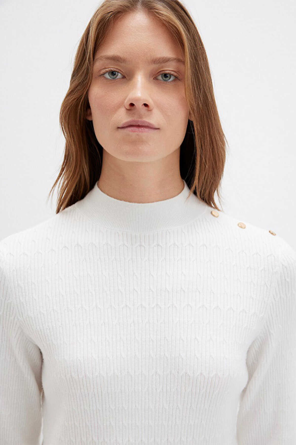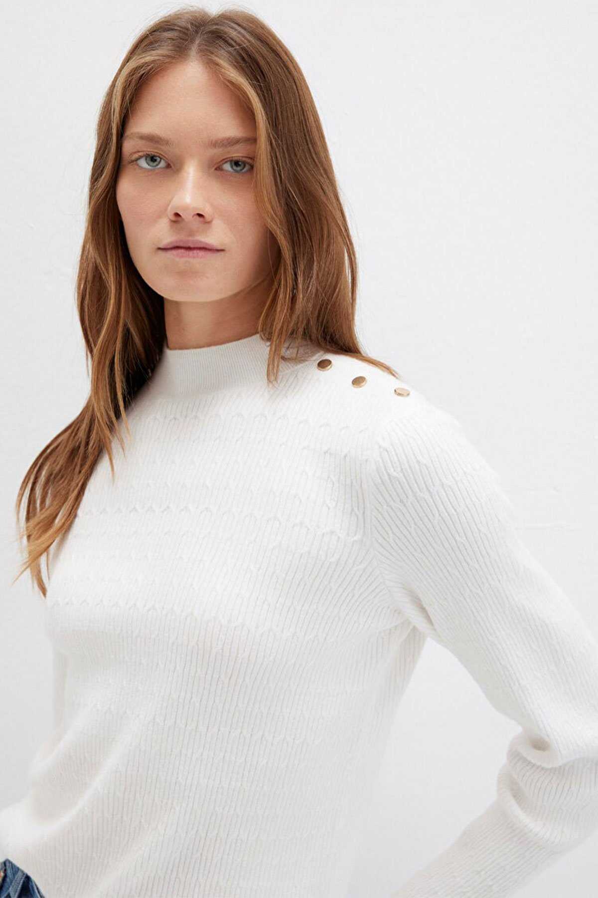 Mavi nin kadın koleksiyonundan Omuz Detaylı Ekru Kazak. - Slim Fit Dar Kesim - Ürün Kodu: 1710798-70057 - Kumaş Bilgileri - %50 Viskoz - %30 Polyester - %20 Polyamit - Manken Ölçüleri - Jean: Bel: 26 Boy: 32 Üst: S - Boy: 177 cm Bel: 65 cm Göğüs: 83 cm Kalça: 92 cm - Menşei: Türkiye