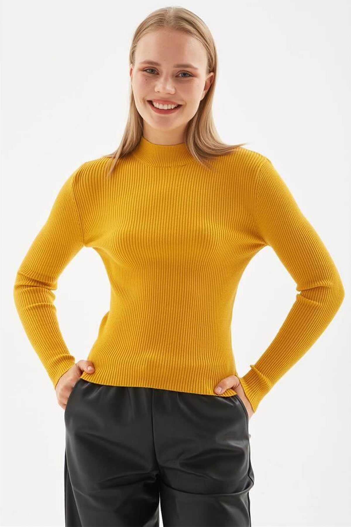 Dik Yaka Kazak-Model Ölçüleri: Boy:1.70 Göğüs:90 Bel:68 Basen:90-Mankenin üzerindeki ürün S2836 bedendir.-Cinsiyet: Kadın-Kalıp: Slim-Yaka Tipi: Dik Yaka-Kol Tipi: Uzun Kol-Kumaş: %52 Viskoz %27 Polyester %21 Polyamid-Ürün Tipi: Triko