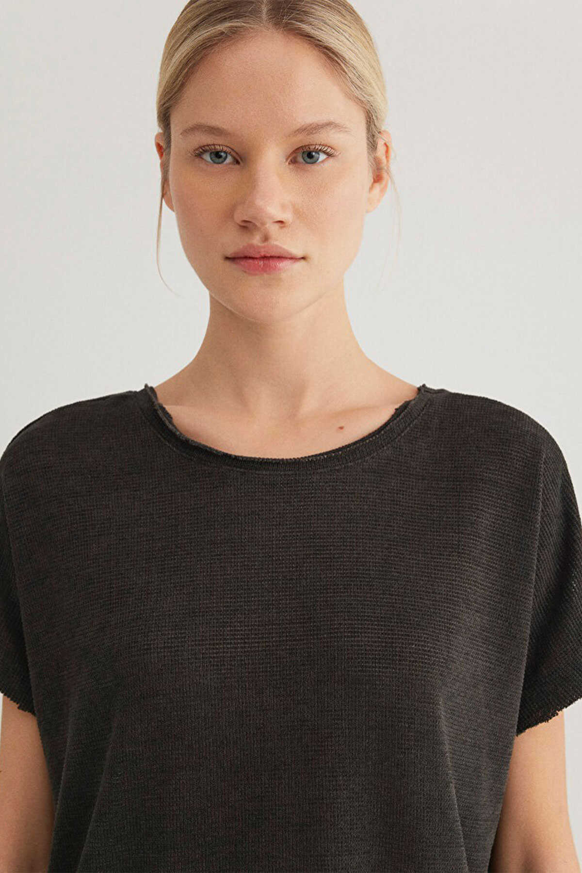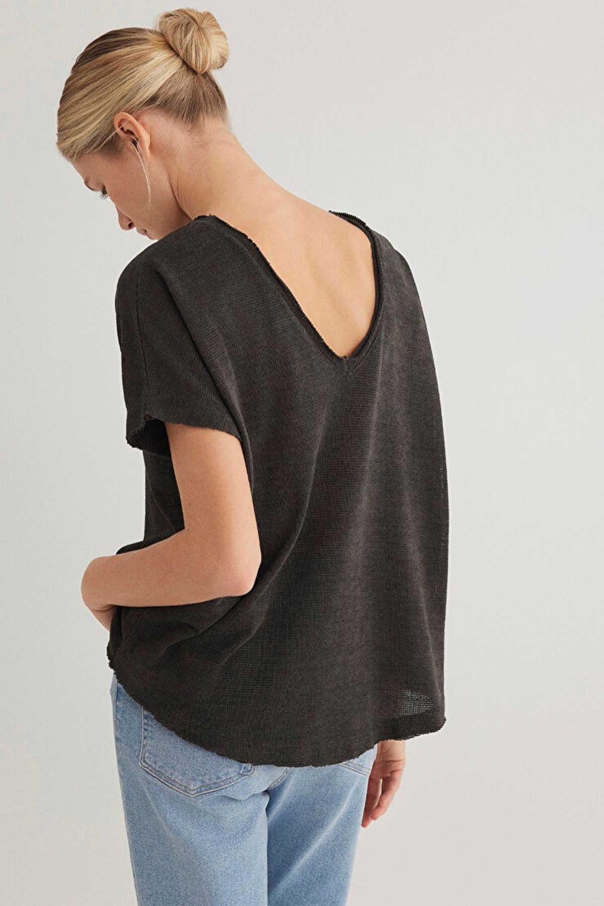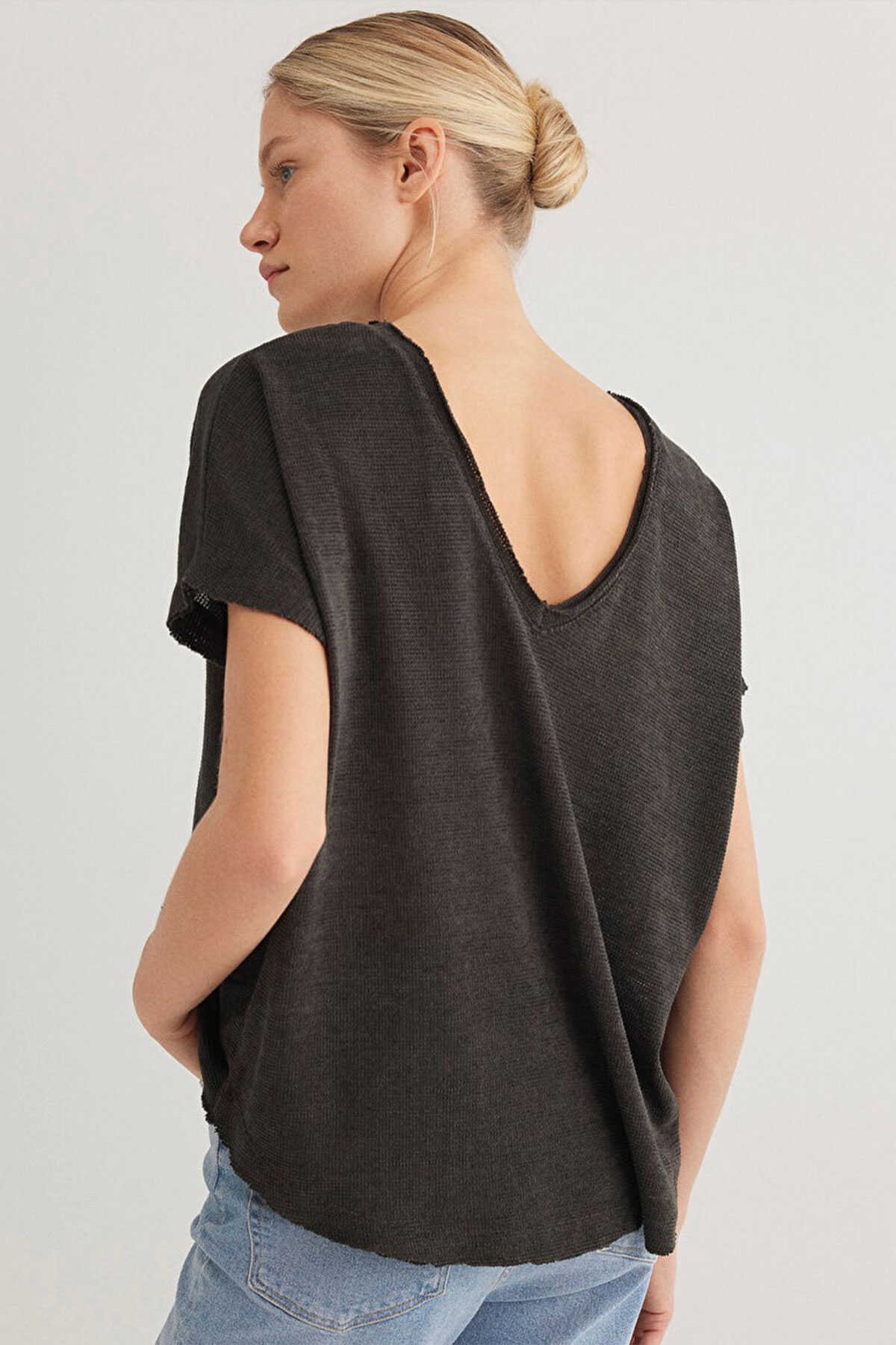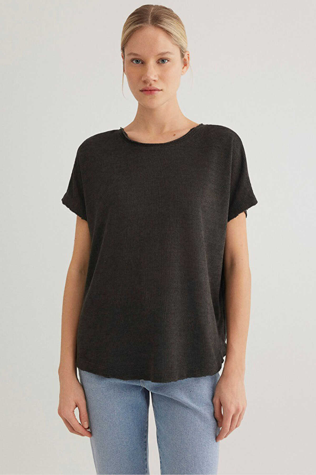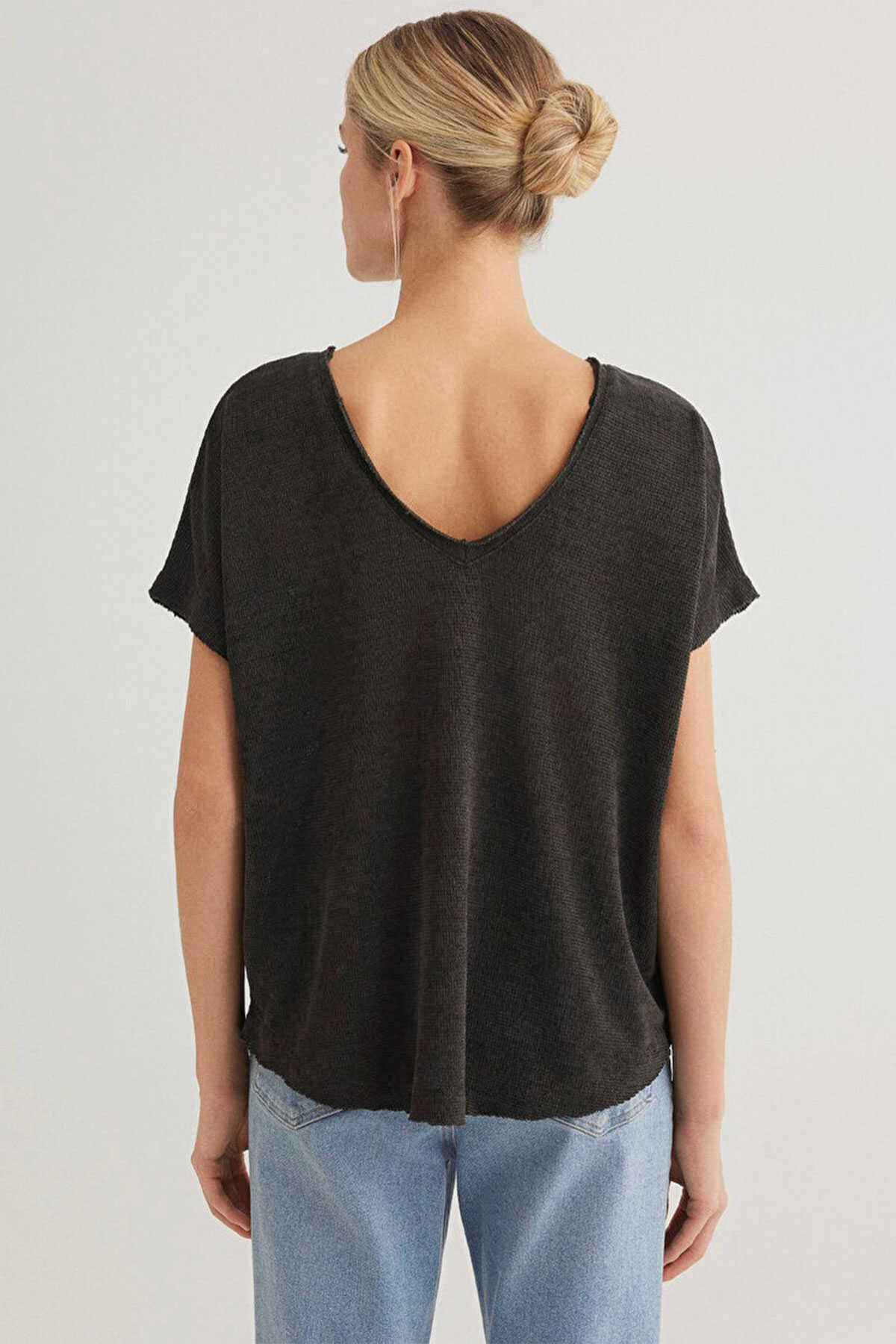 Oversize geniş kesim. -Kısa kol. -Sırtında V yaka detay. -Yakasında kollarında ve etek ucunda raw dikiş detayları. -Dokulu Antrasit Basic Tişört.-Ürün Kodu: 167311-70087-Kumaş Bilgileri-%100 Polyester-Manken Ölçüleri-Jean: Bel: 26 Boy: 32 Üst: S-Boy: 177 cm Bel: 59 cm Göğüs: 75 cm Kalça: 87 cm-Menşei: Türkiye