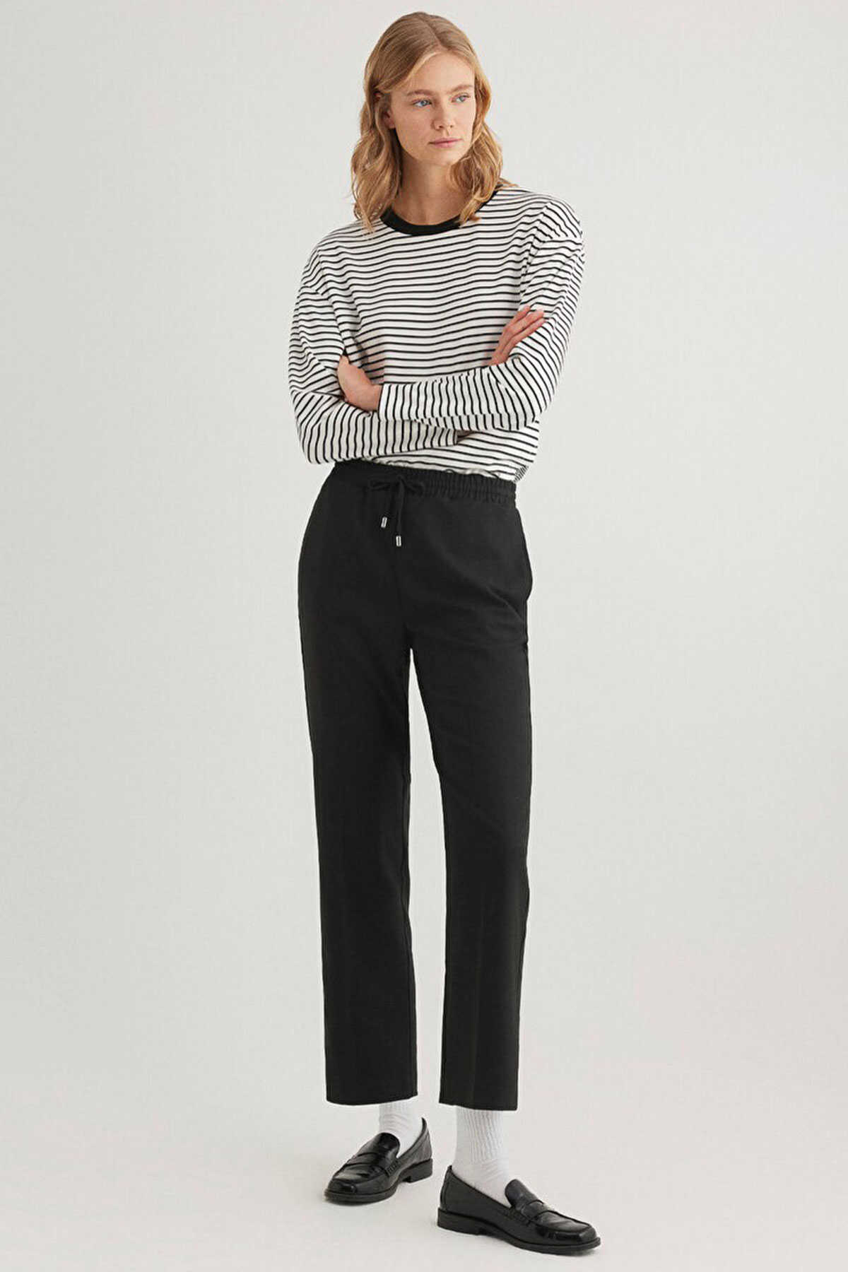 Mavi nin kadın koleksiyonundan Siyah Pantolon-Normal Be lDaralan Paça-Ürün Kodu: 1010946-900-Kumaş Bilgileri-%64 Polyester-%34 Viskoz-%2 Elastan