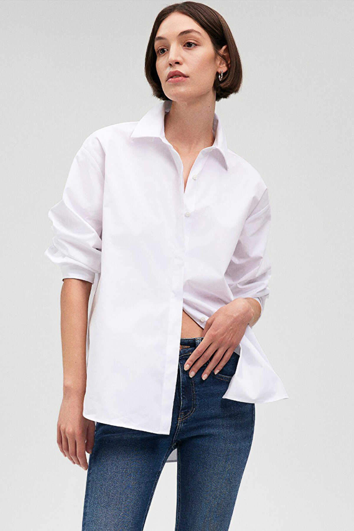 Mavi nin kadın koleksiyonundan Beyaz Gömlek-Oversize Geniş Kesim-Ürün Kodu: 1210675-620-Manken Ölçüleri-Jean: Bel: 26 Boy: 32 Üst: S-Boy: 181 cm Bel: 58 cm Göğüs: 83 cm Kalça: 90 cm