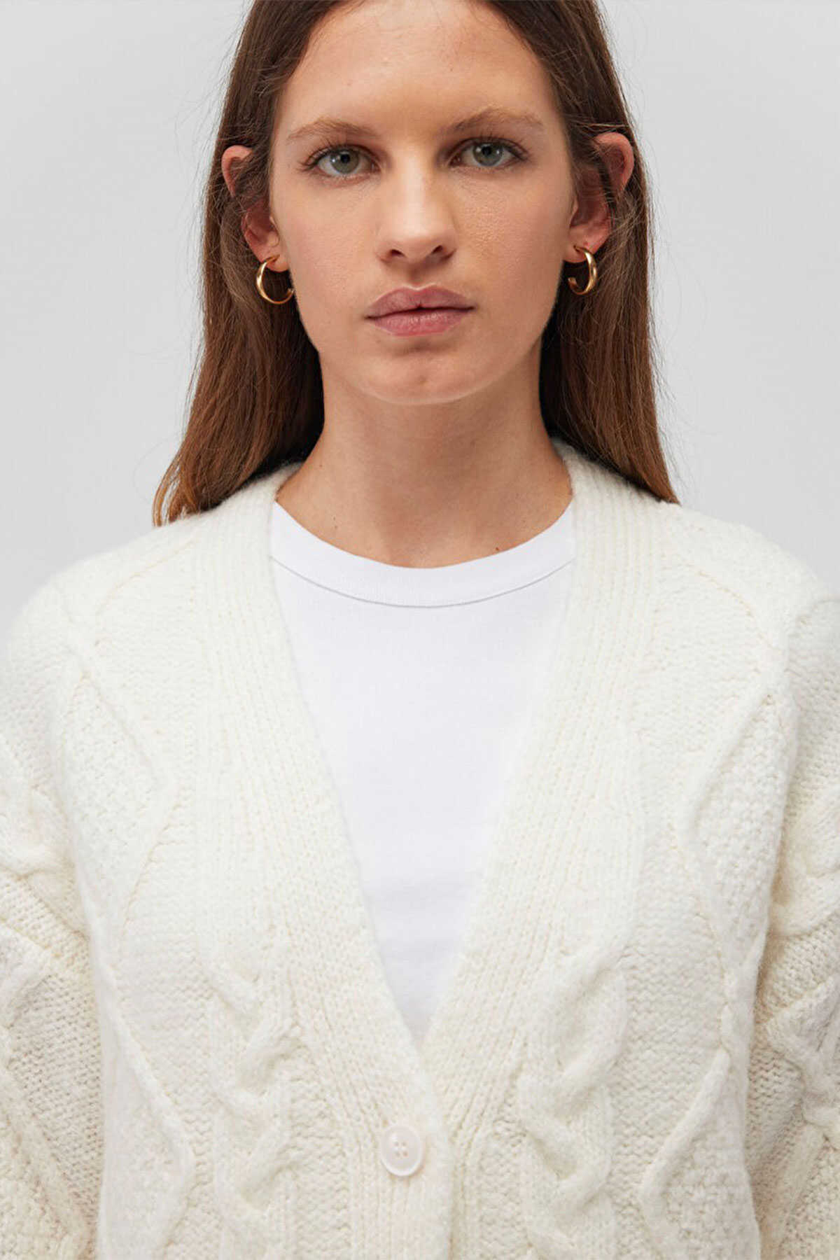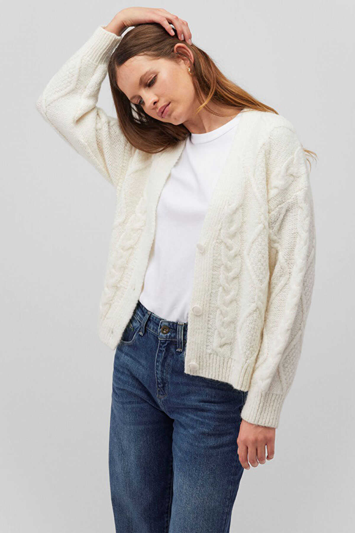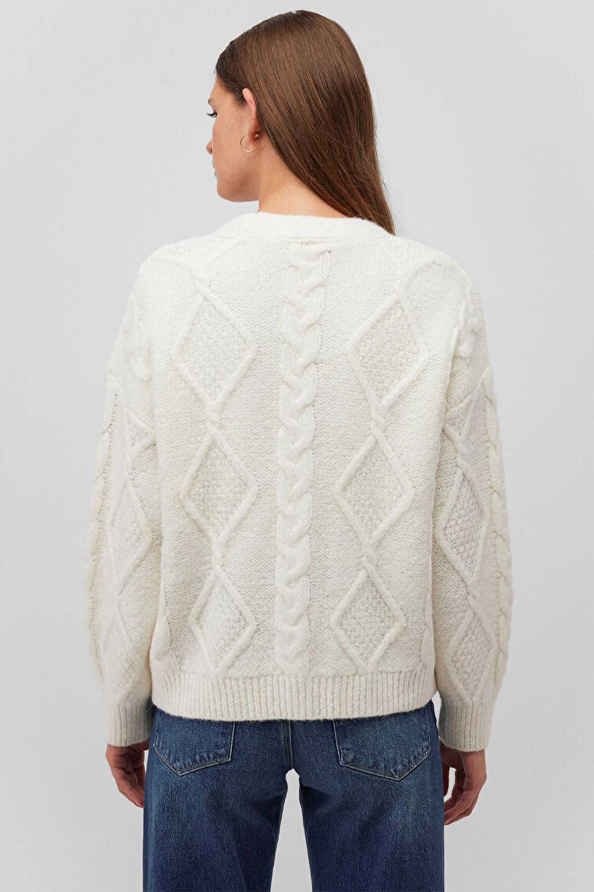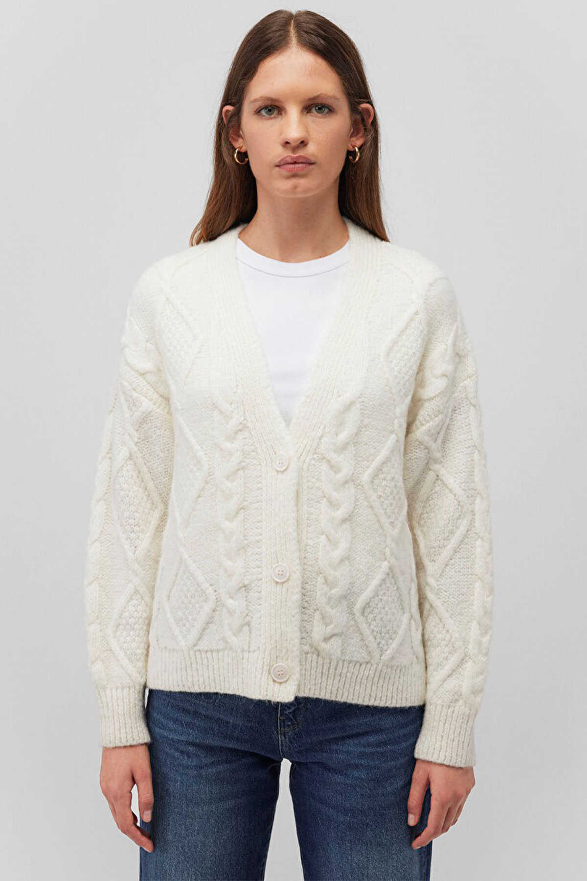 Mavi nin kadın koleksiyonundan Düğmeli Beyaz Hırka.-Loose Fit Bol Rahat Kesim-Ürün Kodu: 1710587-70057-Kumaş Bilgileri-%60 Akrilik-%21 Polyester-%19 Polyamit-Manken Ölçüleri-Jean: Bel: 26 Boy: 32 Üst: S-Boy: 177 cm Bel: 61 cm Göğüs: 77 cm Kalça: 92 cm