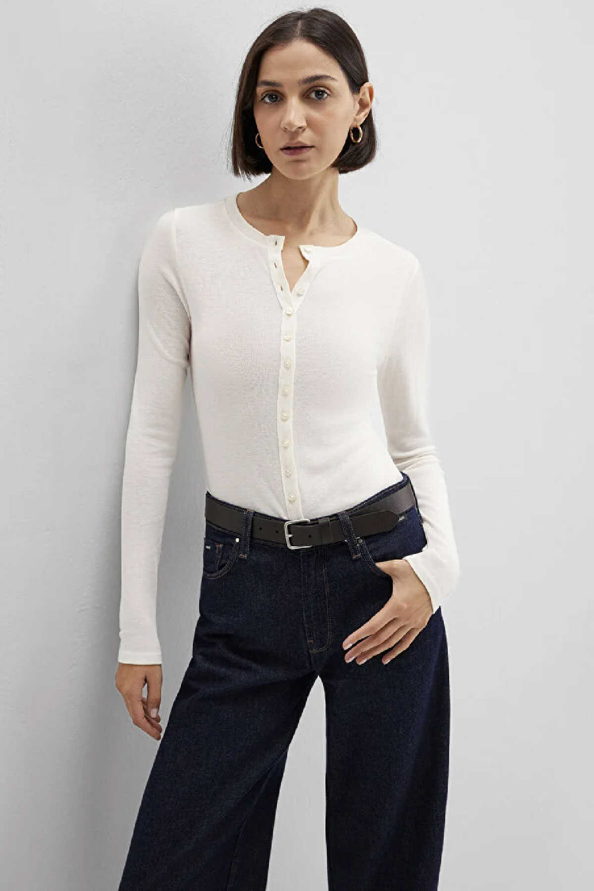 Sadeliğin özen ve kaliteyle buluştuğu Mavi Edition koleksiyonundan Düğme Detaylı Ekru Uzun Kollu Tişört. Mavi Edition Koleksiyonu yalın çizgileri ve kendine güvenen tarzıyla günümüz moda dünyasında rafine şıklığın ifadesi olarak öne çıkıyor.-Ürün Kodu: 1613652-80194-Manken Ölçüleri-Jean: Bel: 26 Boy: 32 Üst: S-Boy: 180 cm Bel: 60 cm Göğüs: 81 cm Kalça: 88 cm-Menşei: Türkiye