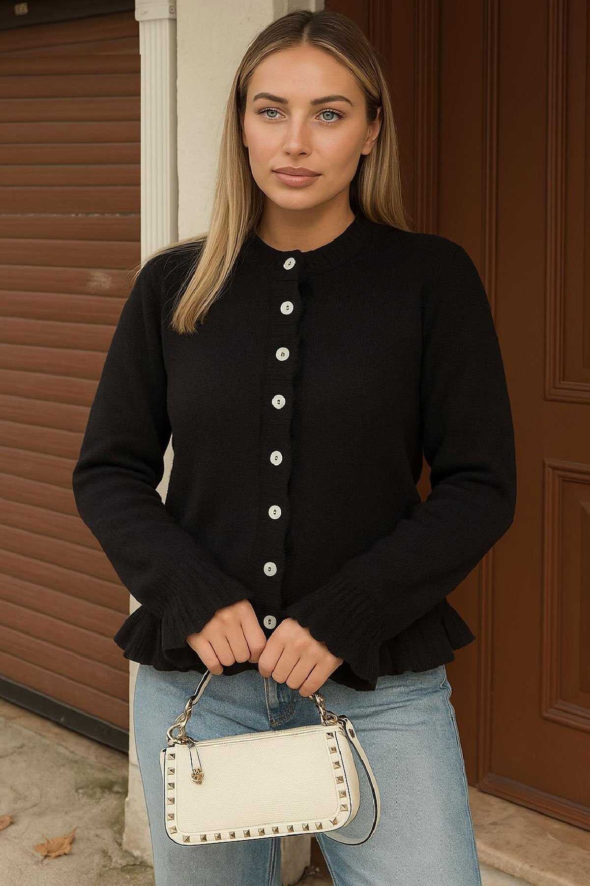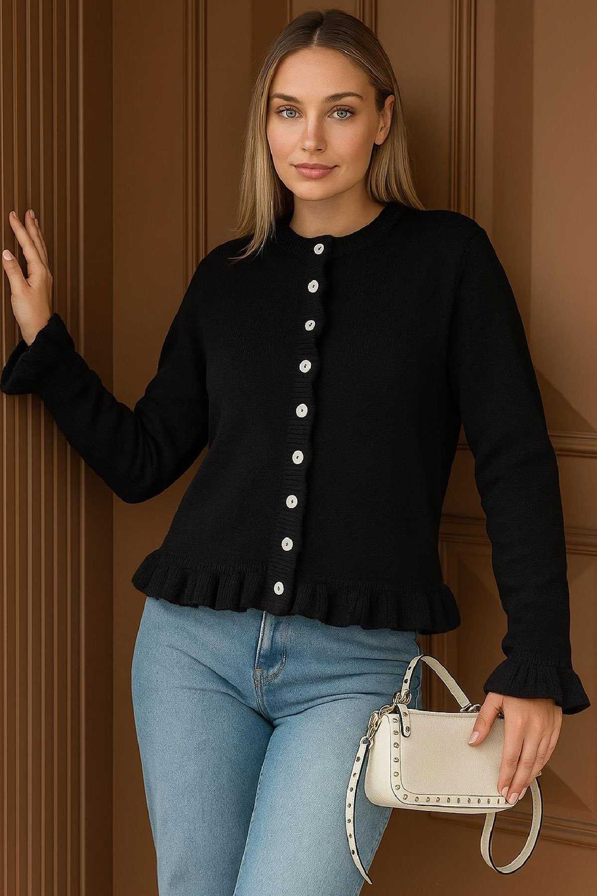 Kadın Fırfır Detaylı Hırka 25K0492K1 Siyah