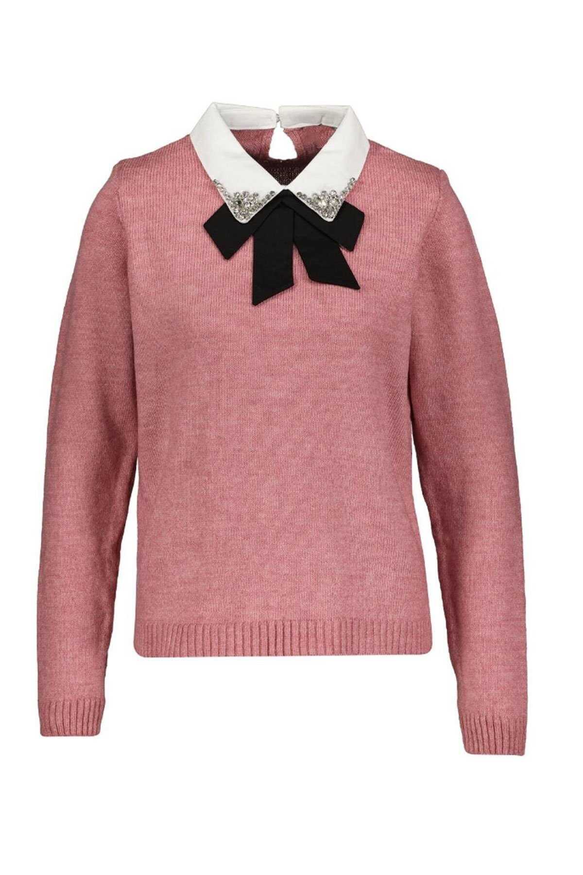Kadın Gömlek Yaka Detaylı Kazak 25K0222K1 Pembe
