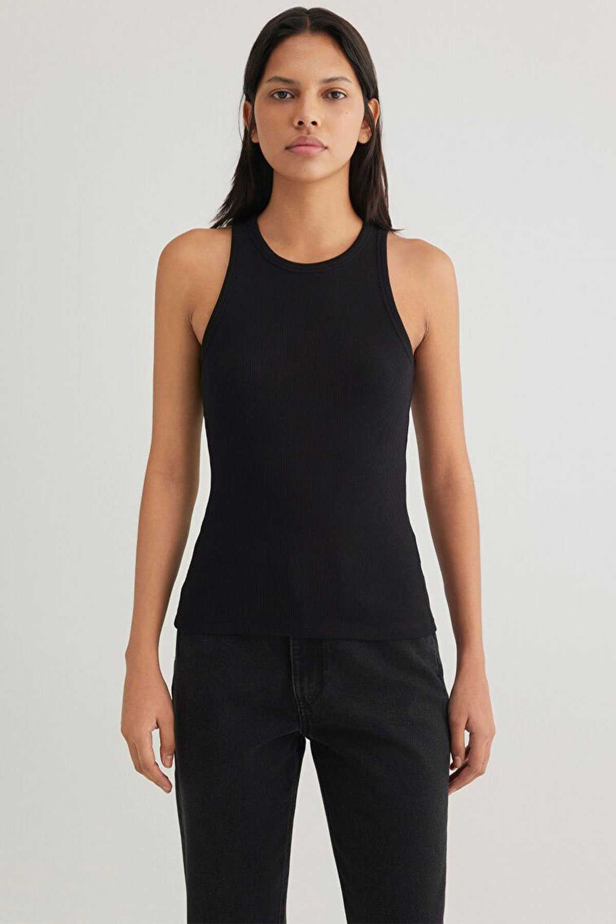 Slim fit dar kesim. -Halter yaka. Kolsuz. Halter Yaka Siyah Basic Atlet.-Ürün Kodu: 1612462-900-Kumaş Bilgileri-%97 Pamuk-%3 Elastan-Manken Ölçüleri-Jean: Bel: 26 Boy: 30 Üst: S-Boy: 177 cm Bel: 59 cm Göğüs: 78 cm Kalça: 89 cm