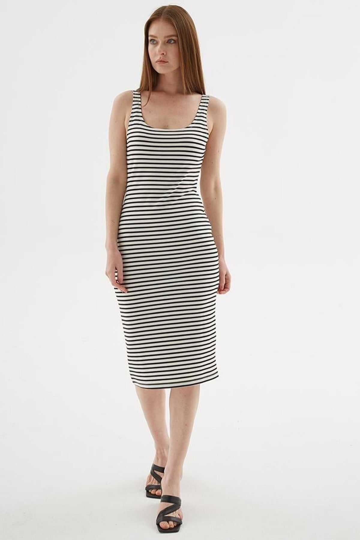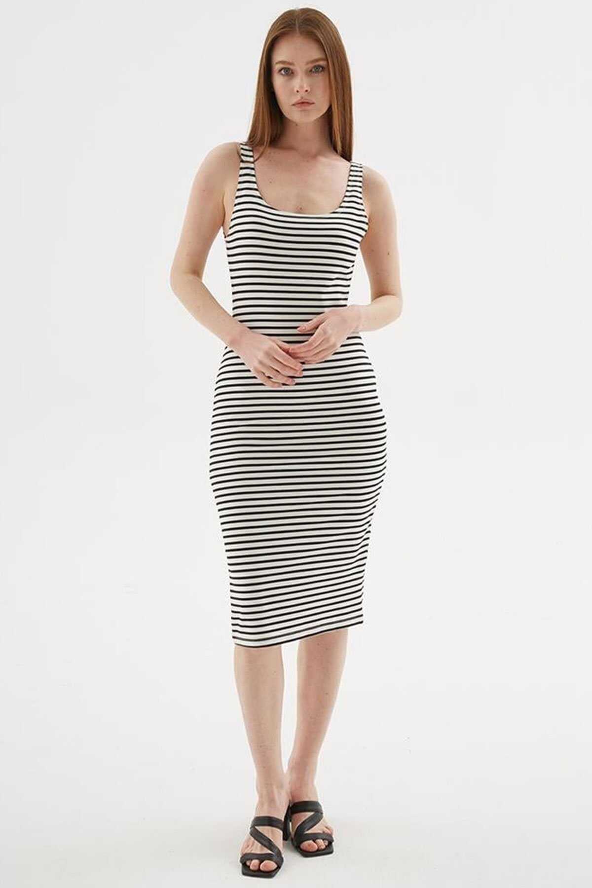 Kare Yaka Midi Elbise-Model Ölçüleri: Boy:1.70 Göğüs:90 Bel:68 Basen:90-Mankenin üzerindeki ürün S2836 bedendir.-Cinsiyet: Kadın-Kalıp: Slim-Yaka Tipi: Kare Yaka-Kol Tipi: KolsuzAskılı-Kumaş: %60 Polyester %35 Viskon %5 Elastan-Ürün Tipi: Örme-Ürün Kodu: 25Y0299K1-Menşei: Türkiye