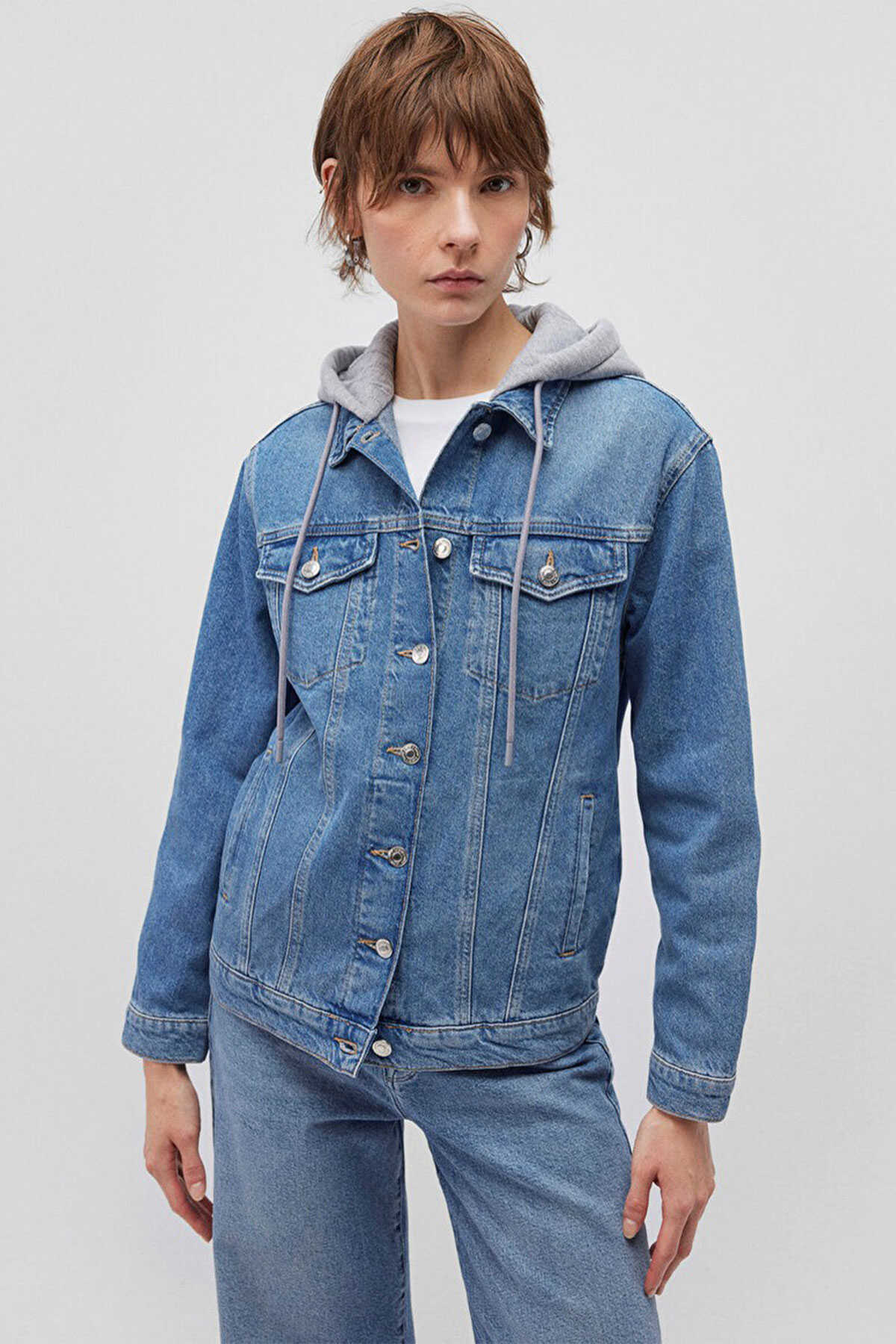 Mavi nin denim koleksiyonundan Karla Mavi 90s Jean Ceket Ürün özellikleri İki Adet Fermuarsız Yan Cep İki Adet Düğmeli Ön Cep İple Ayarlanabilir Kapüşon.-Ürün Kodu: 110154-85296-Kumaş Bilgileri-%100 Pamuk-Manken Ölçüleri-Jean: Bel: 26 Boy: 31 Üst: S-Boy: 178 cm Bel: 59 cm Göğüs: 80 cm Kalça: 89 cm
